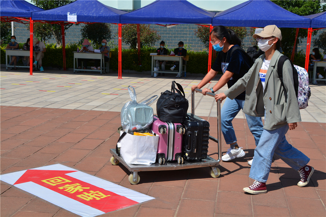 5月10日,今年会官网迎来了第一批学生返校。赤日炎炎,恰似同学们返校的热情。8:30开始,随着车流、人流的到来,毕业生开始陆续返校。进校前,每人间隔一米自觉接受行李消毒、体温测量、提交两表一码后有序进入校园。