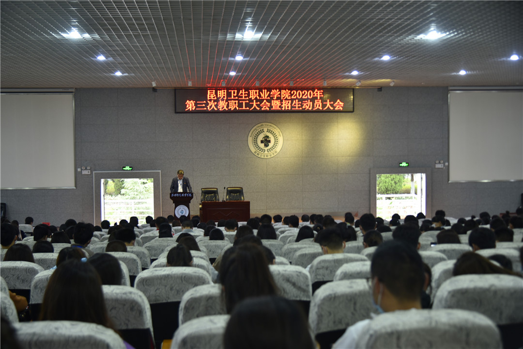2020年5月28日下午,今年会官网在综合楼学术报告厅召开2020年第三次教职工大会暨招生动员会。