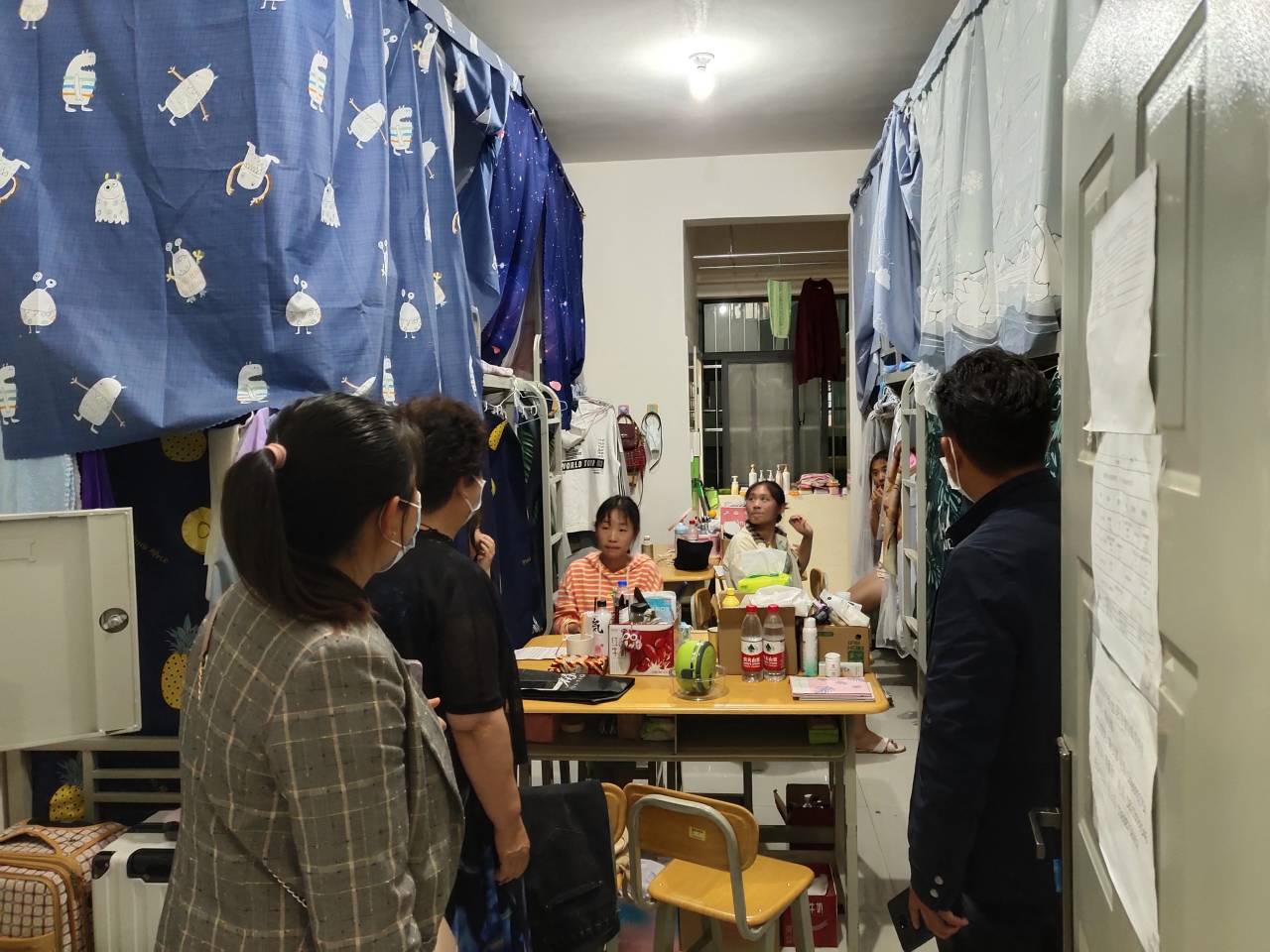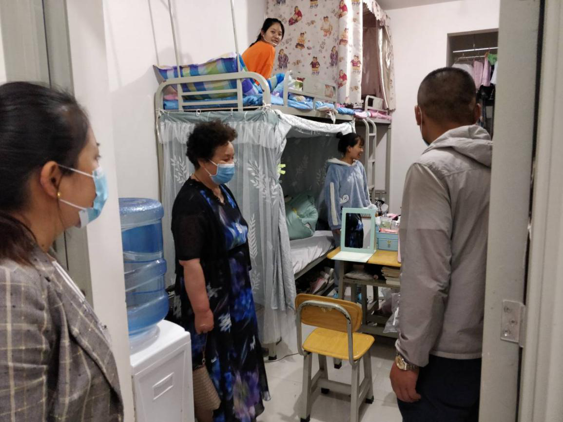 为了了解同学们返校后的情况,学院蒋院长、支部书记王德昌、综合办主任李晓霞、年级主任宋超、起富勇老师走进学生宿舍,走访和看望返校学生。在宿舍里,学院领导和同学们亲切交谈,了解大家在假期间的学习情况,询问大家返校后在学习和生活方面有否遇到困难和问题,叮嘱大家要提高警惕,做好防护,不能大意。要根据学校要求规定,积极配合防疫工作。要做好卫生清扫,保持环境清洁,多锻炼身体,增强抵抗力,做到学习和防疫两不误。