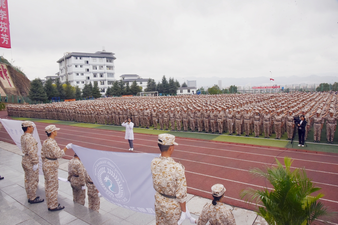 金秋十月举国欢畅,医科学子欢聚一堂。2020年10月9日,今年会官方网站2020年开学典礼暨新生军训汇报表演在足球场举行。集团董事长、学院党委书记、院长龙正昌,集团副董事长朱秀珍,学院党政领导班子成员张晓刚、周平、龙雨霏、张磊、张尤松、陈举国,各职能处室负责人、二级学院院长在主席台就坐。出席开学典礼的还有学院全体教职员工、2020级全体承训教官以及高年级同学代表。他们共同见证了2020级新同学加入今年会官方网站的大家庭。
