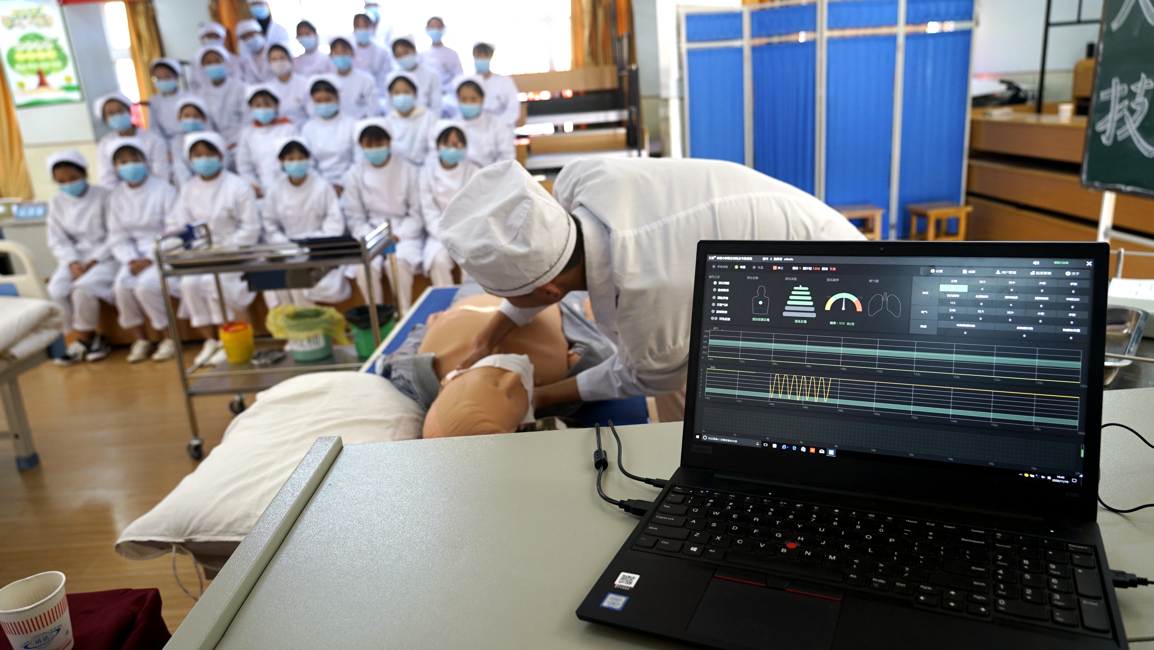 按压位置正确,吹气量过大,按压深度符合标准……一组组数据正显示在心肺复苏赛场的一台电脑上。