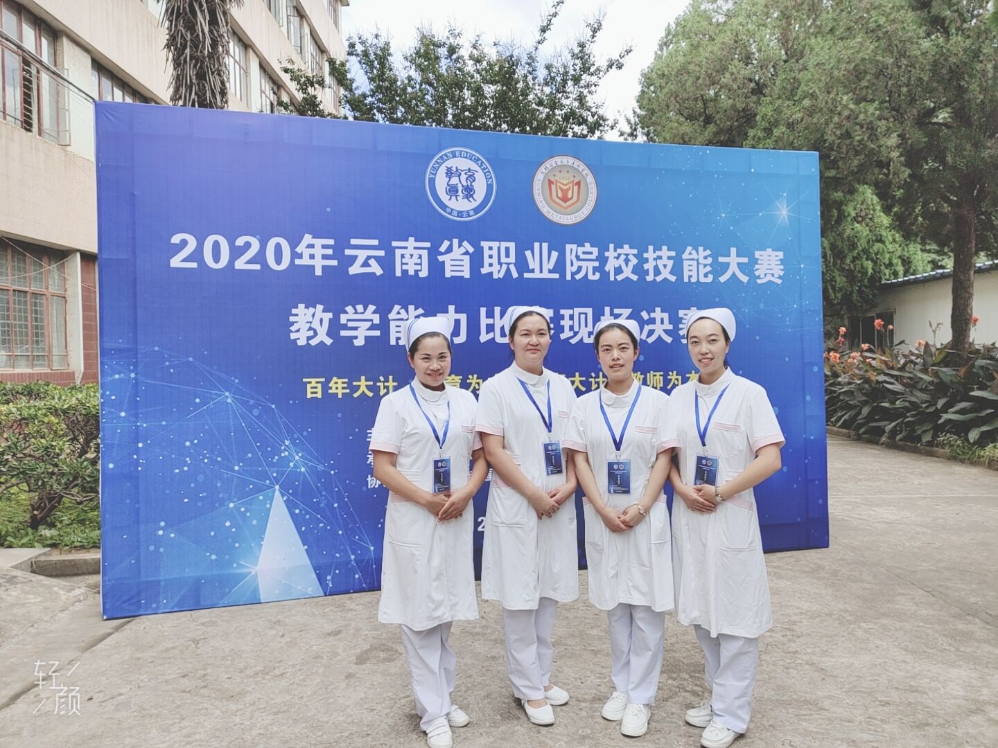 近日,云南省教育厅公布了2020年职业院校技能大赛教学能力比赛获奖名单。今年会官方网站推荐参赛的教学团队中,有9个教学团队脱颖而出,喜获佳绩——荣获一等奖4项、二等奖4项、三等奖1项。其中,中职组护理专业课程代表队杨金芬、叶萌洁、何红凤、阳淑芳四位老师,公共课程代表队念黎、严紫华、李嘉燕、郑小萍四位老师以较高的职业素养和职业技能获得了评委老师的一致好评,最终被推选进入全国教学能力比赛。