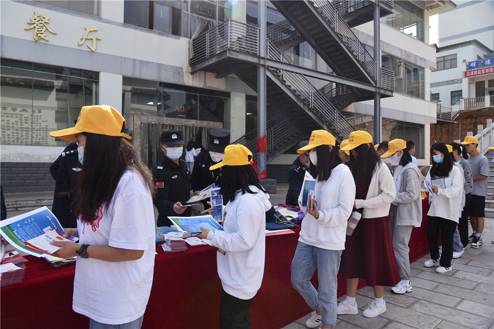 出席活动的领导和现场民警为师生发放《国家安全法》等相关法律宣传材料。
