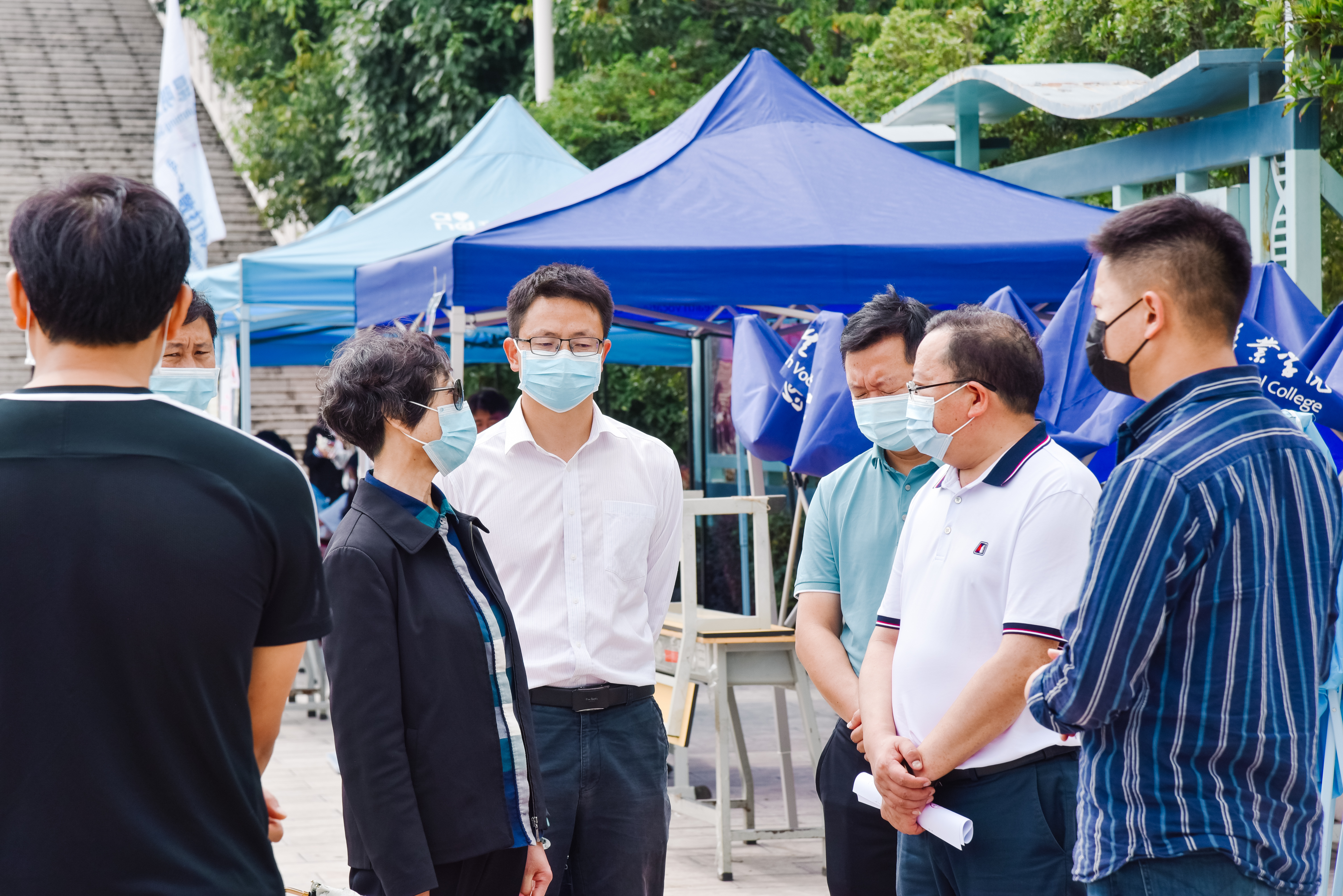在学院副董事长朱秀珍、党委副书记张晓刚、副院长张磊等领导的陪同下,穆仁早副书记一行实地走访了校园环境,并了解学院疫情防控工作方案、防疫物资到位和学生返校及报到情况。