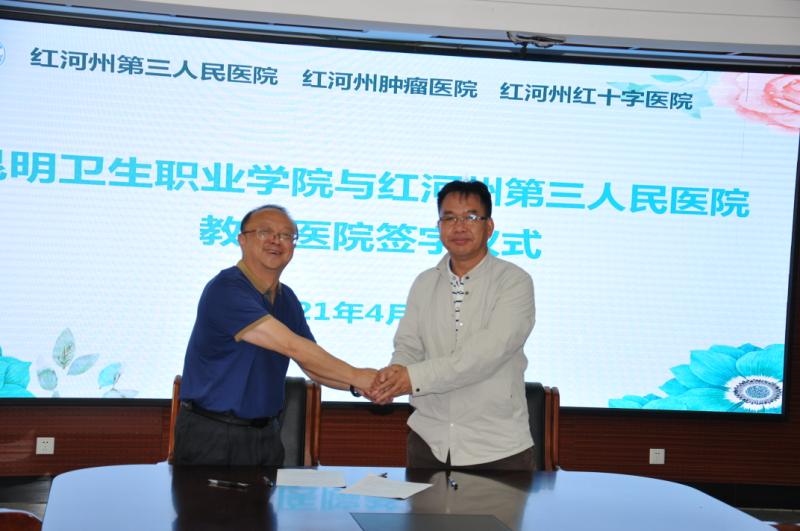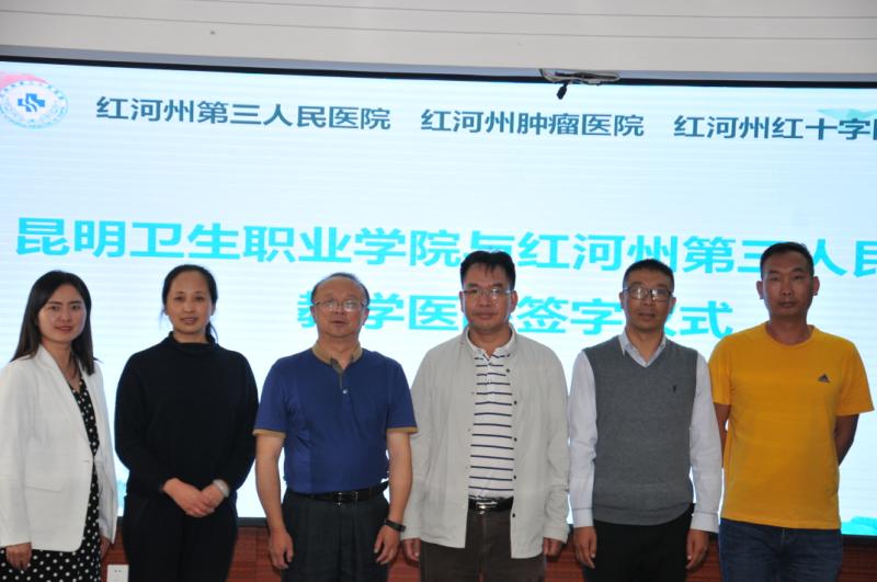 最后,红河州第三人民医院副院长后群与今年会官方网站副院长张尤松共同签订了《教学医院协议书》。相关领导及与会人员共同合影留念。签约仪式结束后,医院教学科邹乙菱主任带领今年会官网张尤松副院长一行进行实地考察,详细介绍了红河州第三人民医院各科室的临床教学情况。
