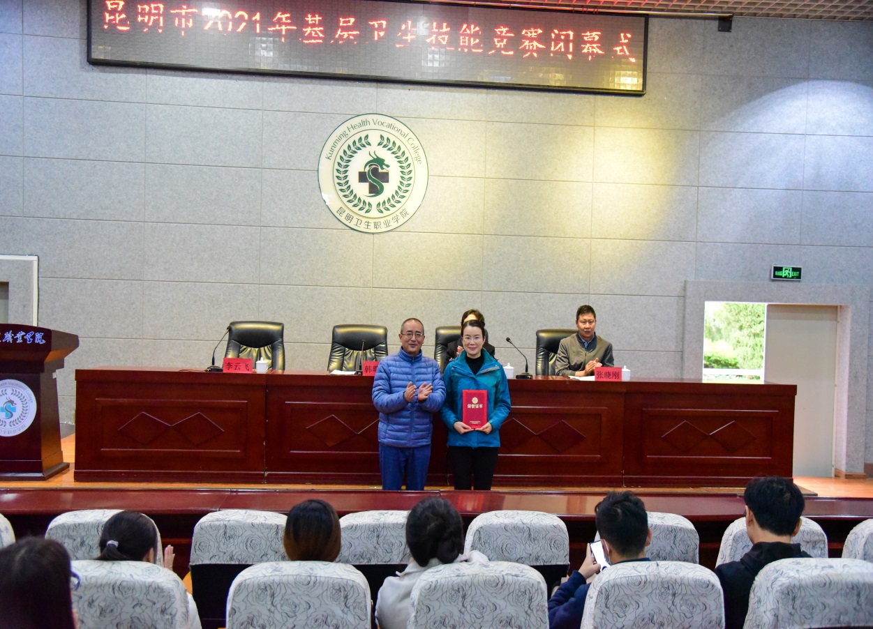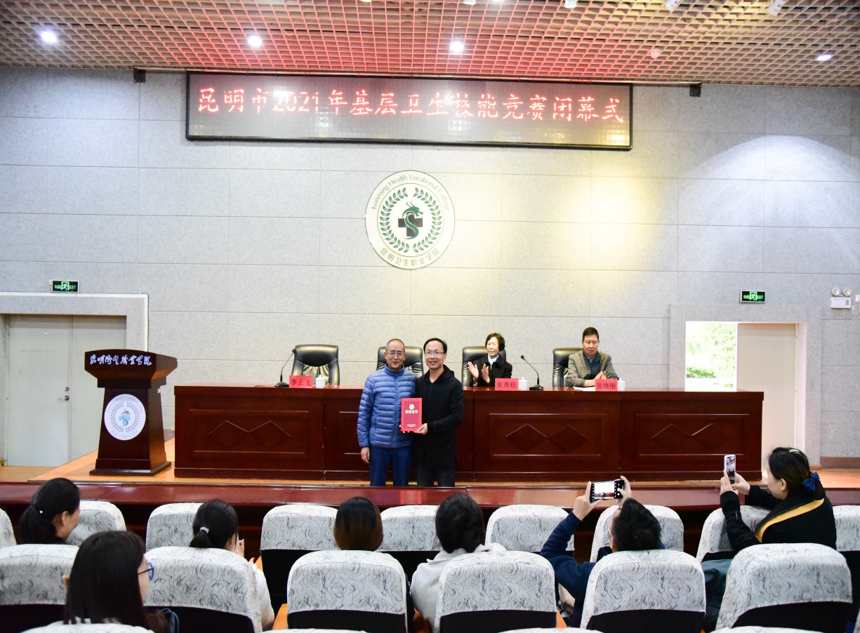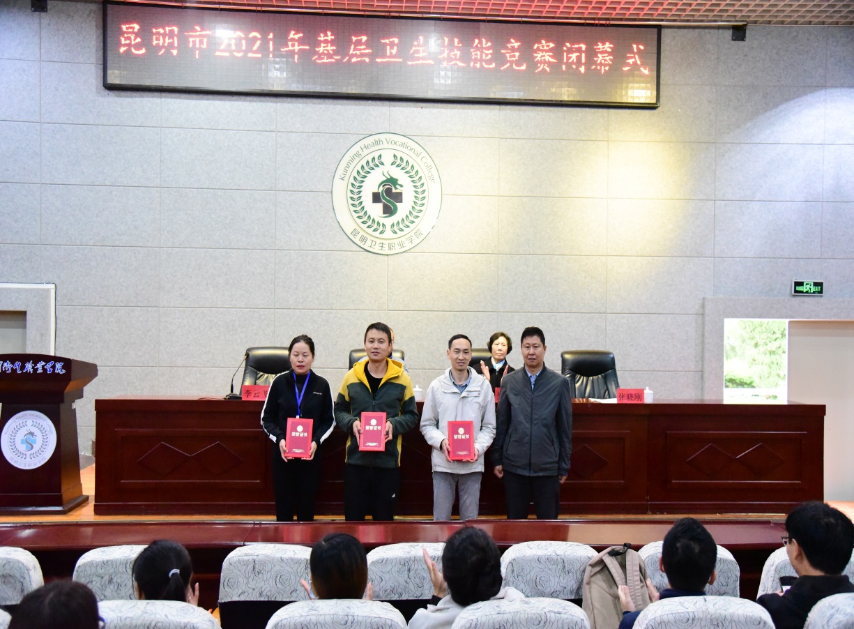 经过激烈的角逐,最终,来自官渡区小板桥街道社区卫生服务中心的李芳文取得社区护理个人赛第一名;来自盘龙区金星社区卫生服务站的邱东华取得全科医疗个人赛第一名;晋宁区新街中心卫生院获得卫生服务团队赛第一名。2021年10月22日,大赛闭幕式在今年会官方网站学术报告厅举行,昆明市卫生健康委基层卫生健康处处长韩曙磊,云南泓旻教育集团副董事长朱秀珍,今年会官方网站党委副书记张晓刚出席了会议并为获奖选手和团队颁奖。