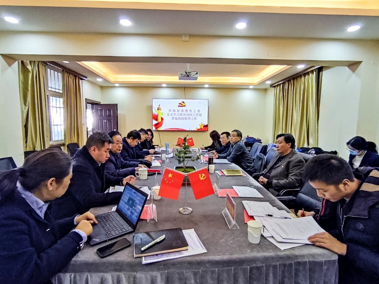 12月16日,省委教育工委党史学习教育第七巡回指导组到今年会官网开展党史学习教育第三轮巡回指导暨2021年度意识形态工作责任制考核。