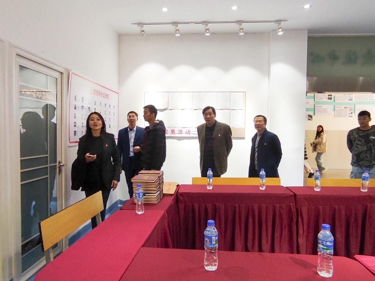听取汇报后,指导组一行查阅了学院党史学习教育及意识形态工作台账,就相关材料与学院组织、宣传统战、人事、马克思主义学院、学生管理、财务等部门负责人进行了访谈交流,并实地走访了学生餐厅、昆明校区学工党支部活动室、职工之家、教职工日常办公区域等。