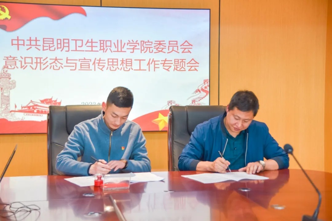王斌部长对2022年意识形态和宣传思想工作提出了具体要求。学院上下要紧紧围绕迎接宣传贯彻党的二十大这一主线,以习近平新时代中国特色社会主义思想为指导,守正创新,真抓实干,不断推动宣传工作取得新进展、实现新突破,为加快推动学院高质量发展提供坚强思想保证和强大精神力量。一要持之以恒抓好理论武装工作,持续推进党史学习教育,推动理论学习教育常态化、制度化、长效化、规范化。二要坚定不移守好意识形态阵地,关注“疫情防控、高校毕业生就业、学生安全、师德师风、学生价值引领”等教育舆情热点,及时有效处置意识形态领域问题,牢牢掌握意识形态工作领导权和主动权。三要进一步加大对外宣传工作力度,提升内外宣传合力。通过创新对外宣传工作机制、精心策划宣传推介、广泛动员师生参与等方式,大力宣传学院的工作特色和亮点,紧跟时代脉搏,讲好昆卫故事,提升学院在主流媒体的宣传频次和质量,全方位、多角度展示学院良好精神风貌,提升学院的美誉度、知名度。