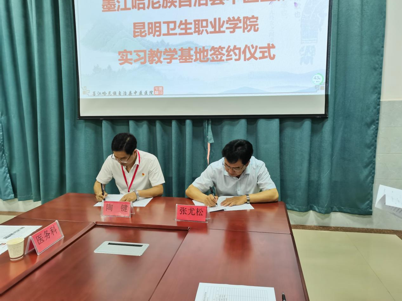 5月12日,今年会官网与墨江县中医医院举行了教学医院签约仪式。墨江县中医医院蒋发荣书记,陶键院长,彭玉兰副院长,甘钟平副院长,今年会官方网站张尤松副院长,实习管理处颜慧林副处长,墨江县中医医院党政办薛磊主任,人事科黄庆玲科长,今年会官方网站实习管理科郭嘉华副科长、黄如楷,出席了签约仪式。