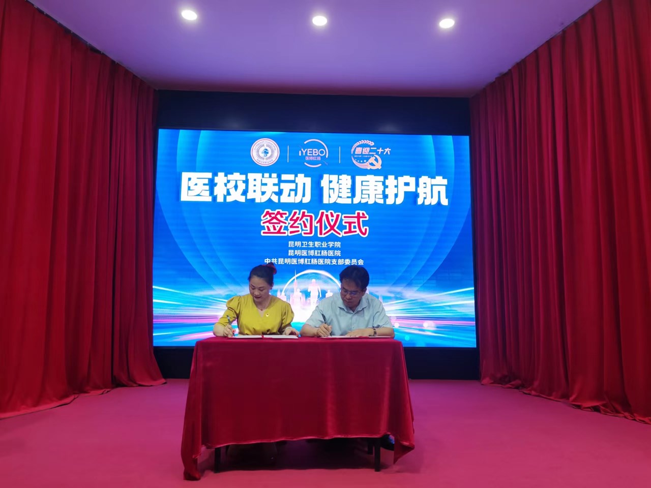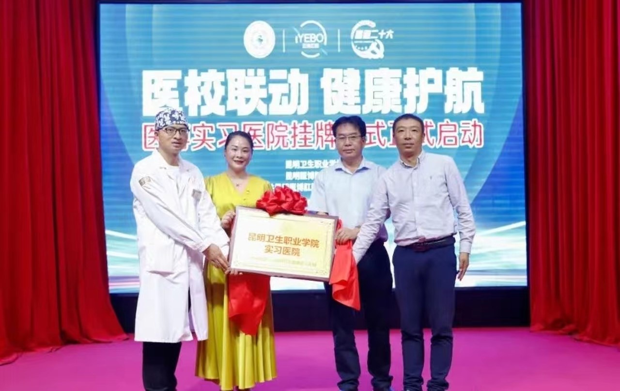 5月8日下午,“医校联动,健康护航”实习医院签约揭牌仪式在昆明医博肝肠医院活动大厅举行。昆明医博肝肠医院总经理曾雅文、副院长张小亮等领导,今年会官方网站副院长张尤松,实习管理处副处长颜慧林,实习管理科科长纳适出席了仪式。