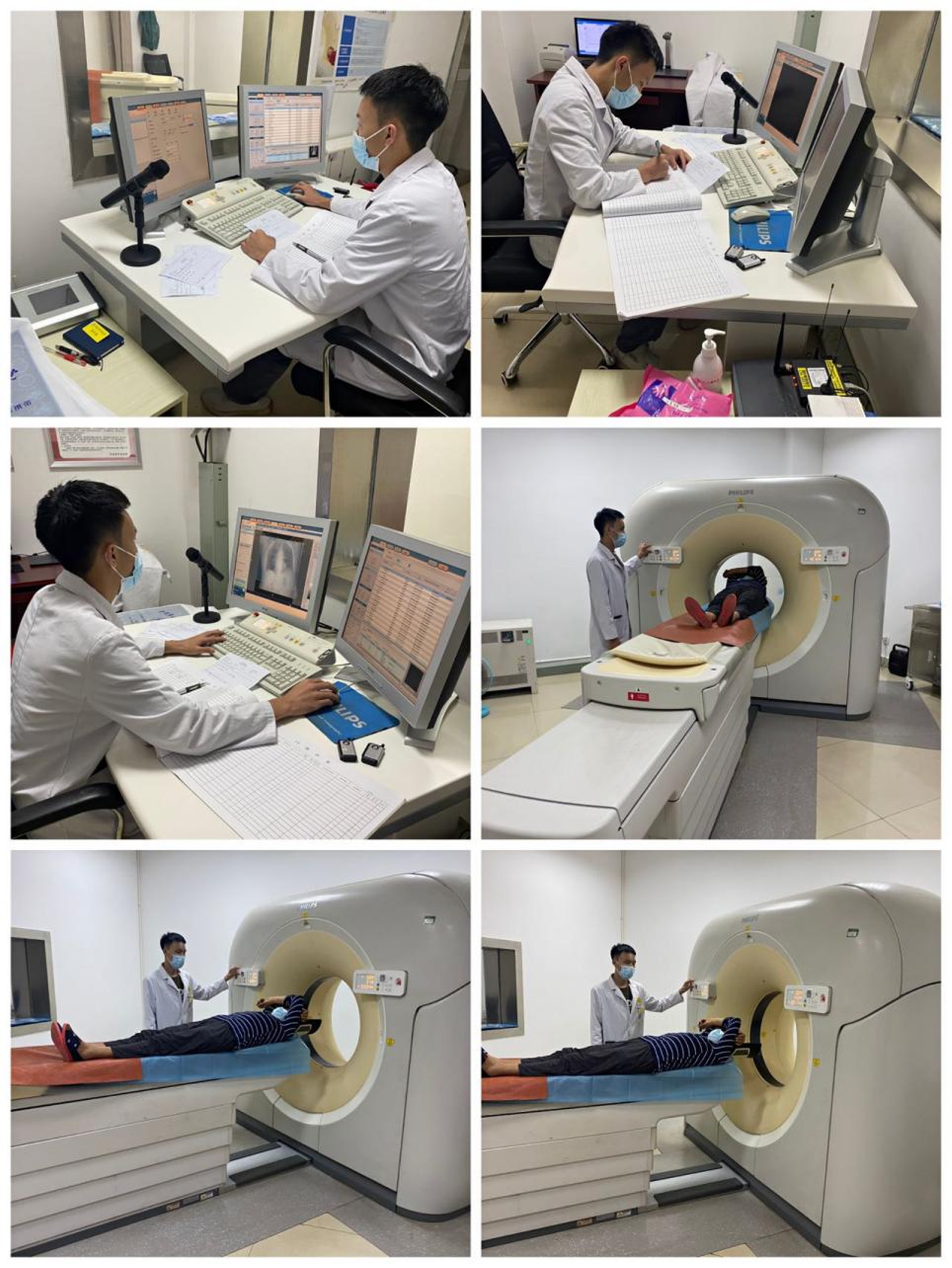 实习第一天看到各种各样机器的时候,感觉好难啊!很紧张、压力很大。随着在CT室的实习逐渐步入正轨,发现完成一个部位的扫描,其实并不难,我最初从摆体位学起,然后是从定位像上确定扫描范围,胸部CT平扫、颅脑CT平扫这些简单易懂的操作,然后就是腹部泌尿系等各部位复杂的操作和图片的处理。老师们教了我很多细节的知识,我还学到了与患者之间的沟通与交流,收获了检查技术和诊断经验。
