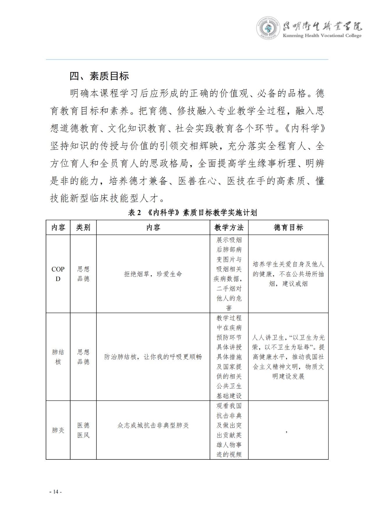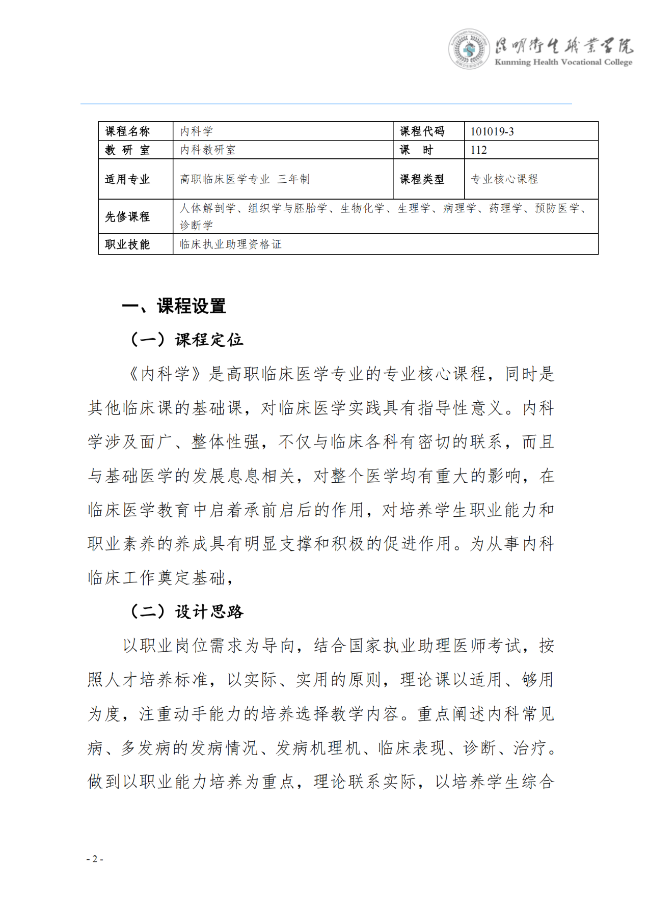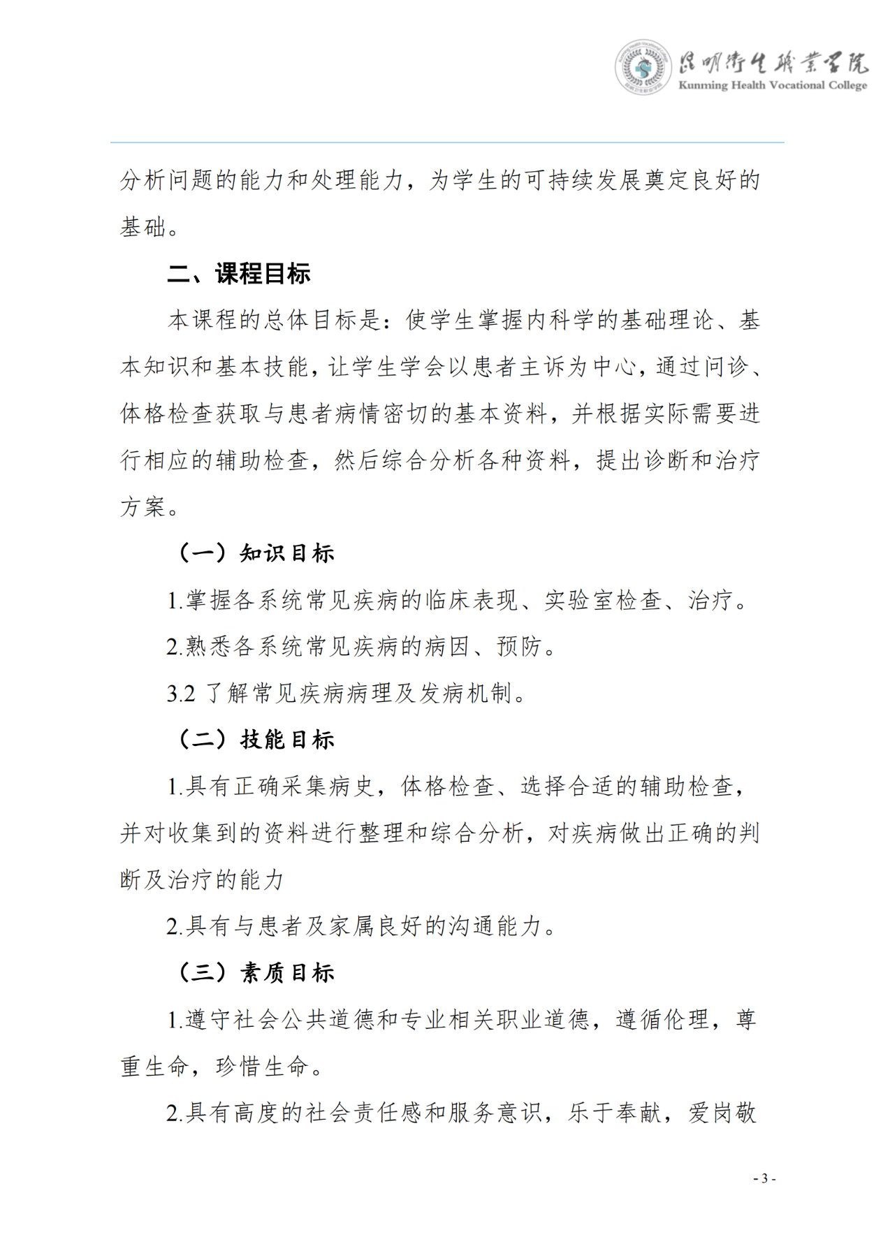 《内科学》课程标准