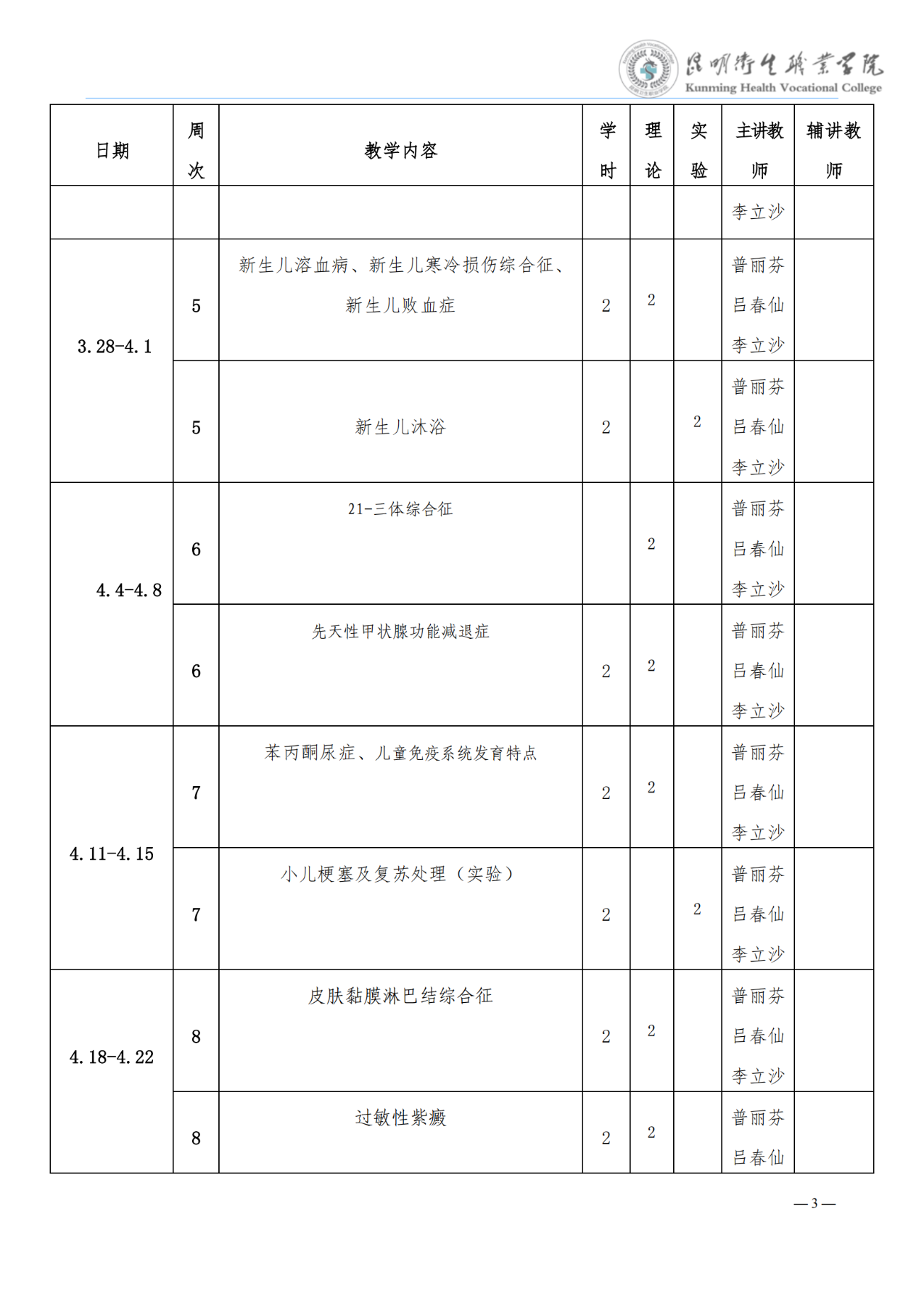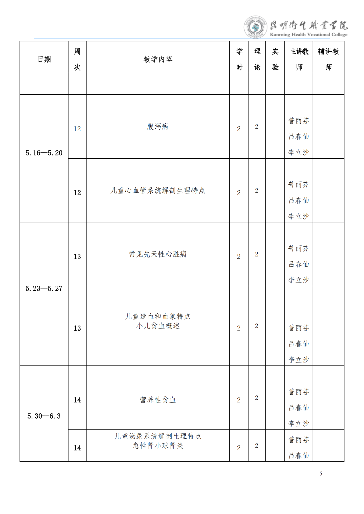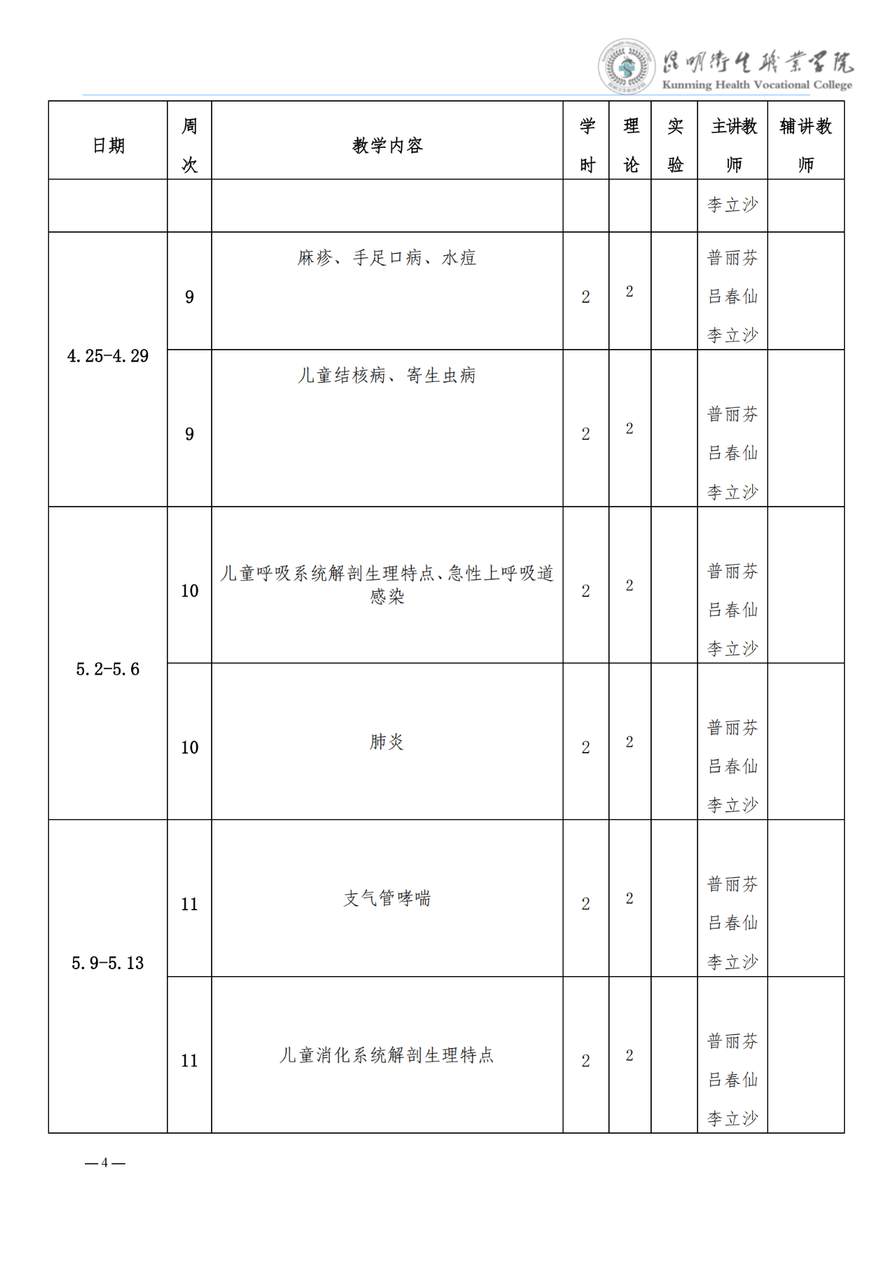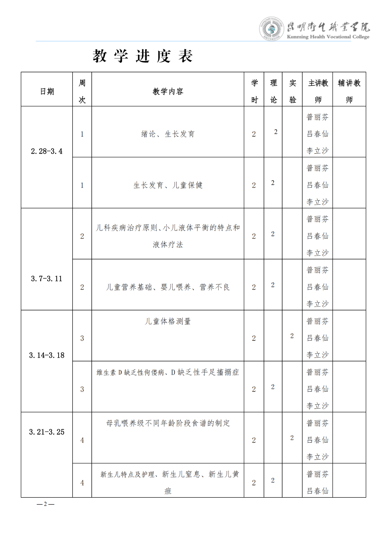 《儿科学》教学进度表
