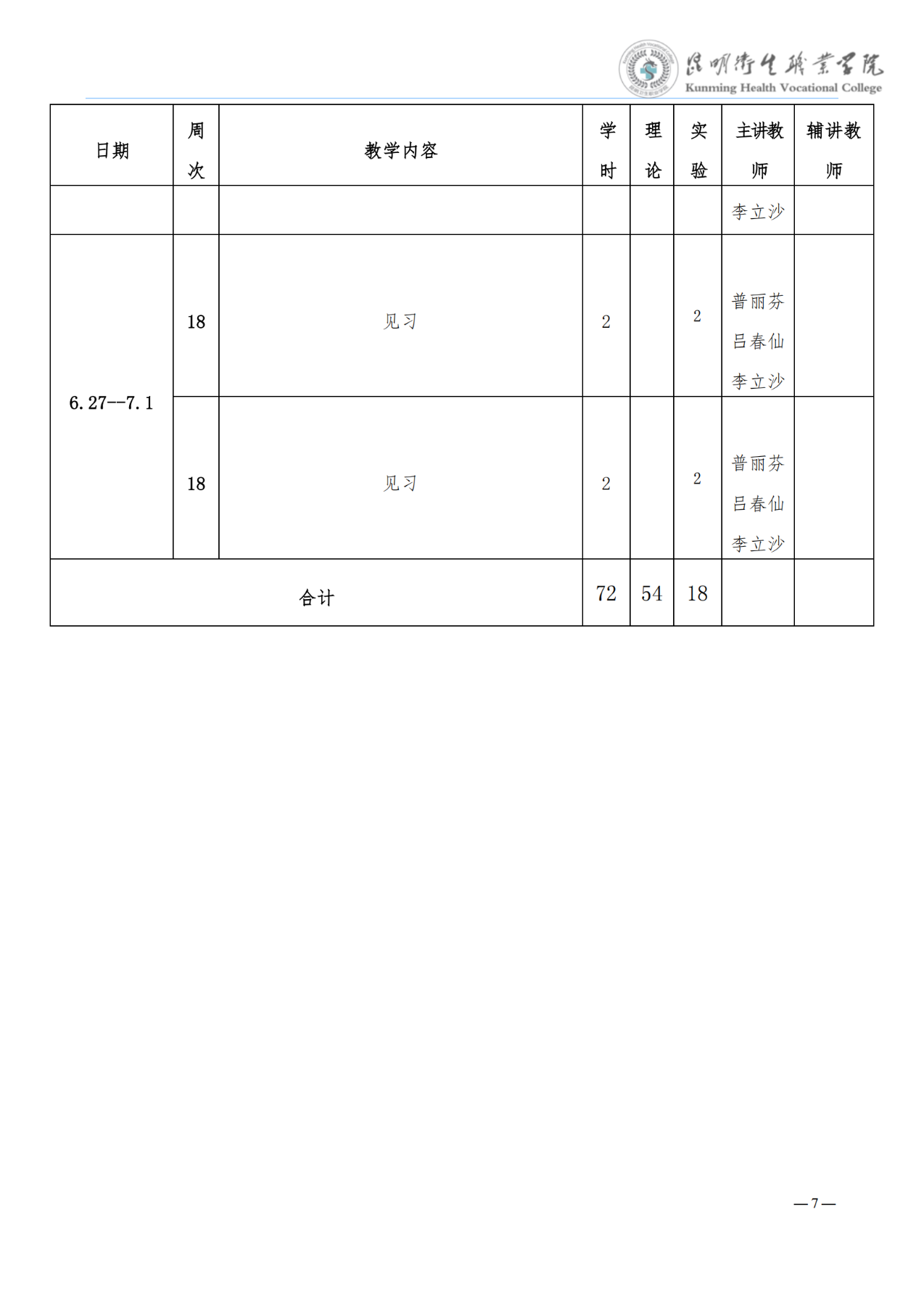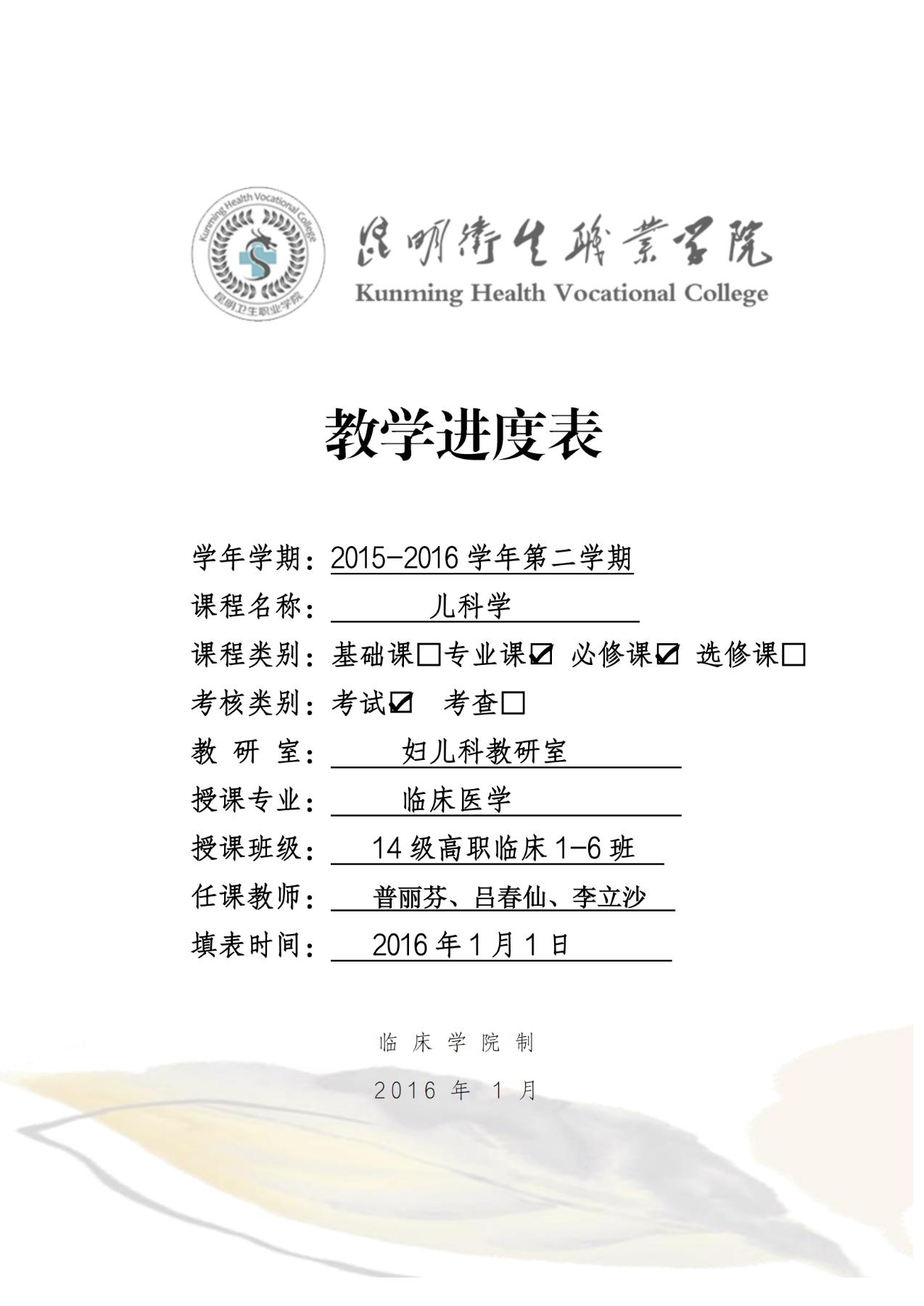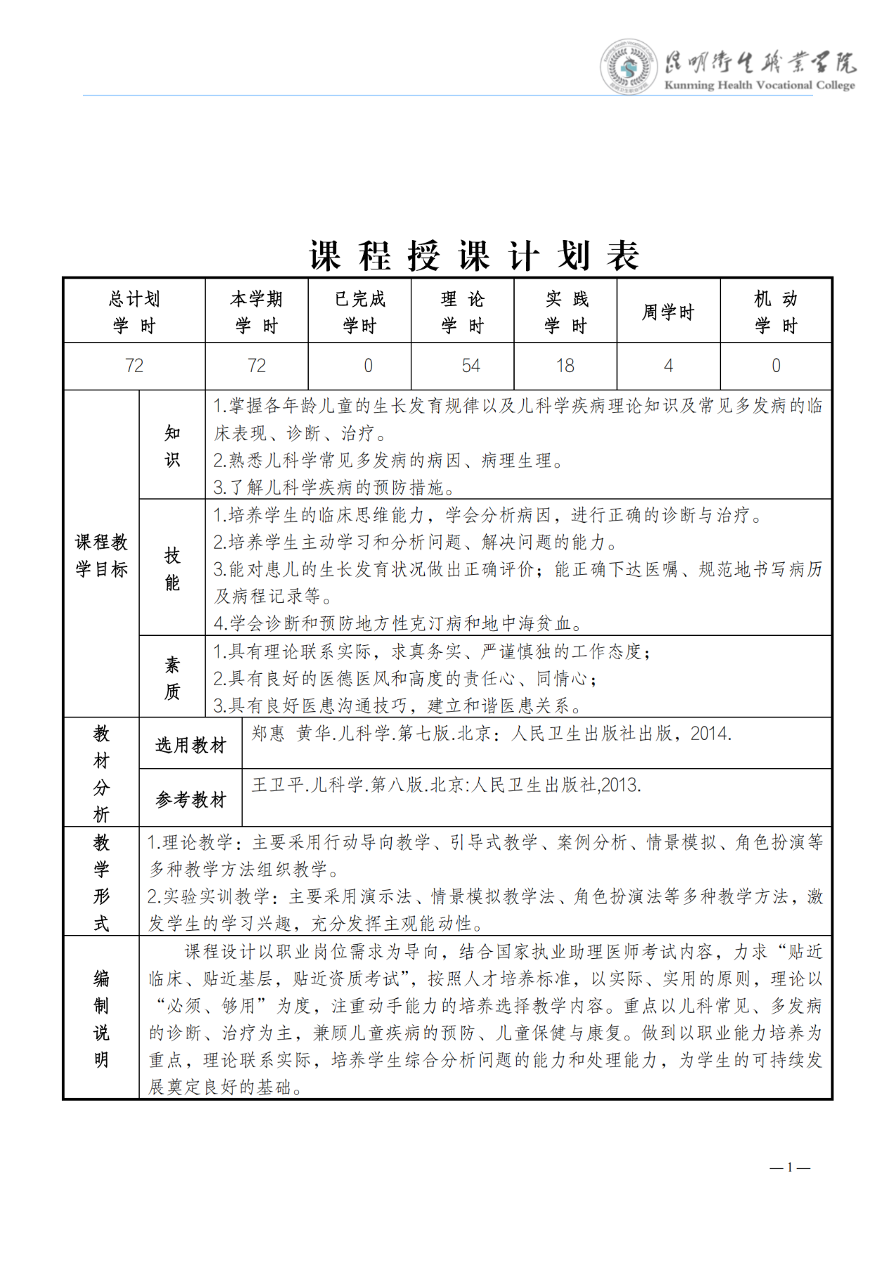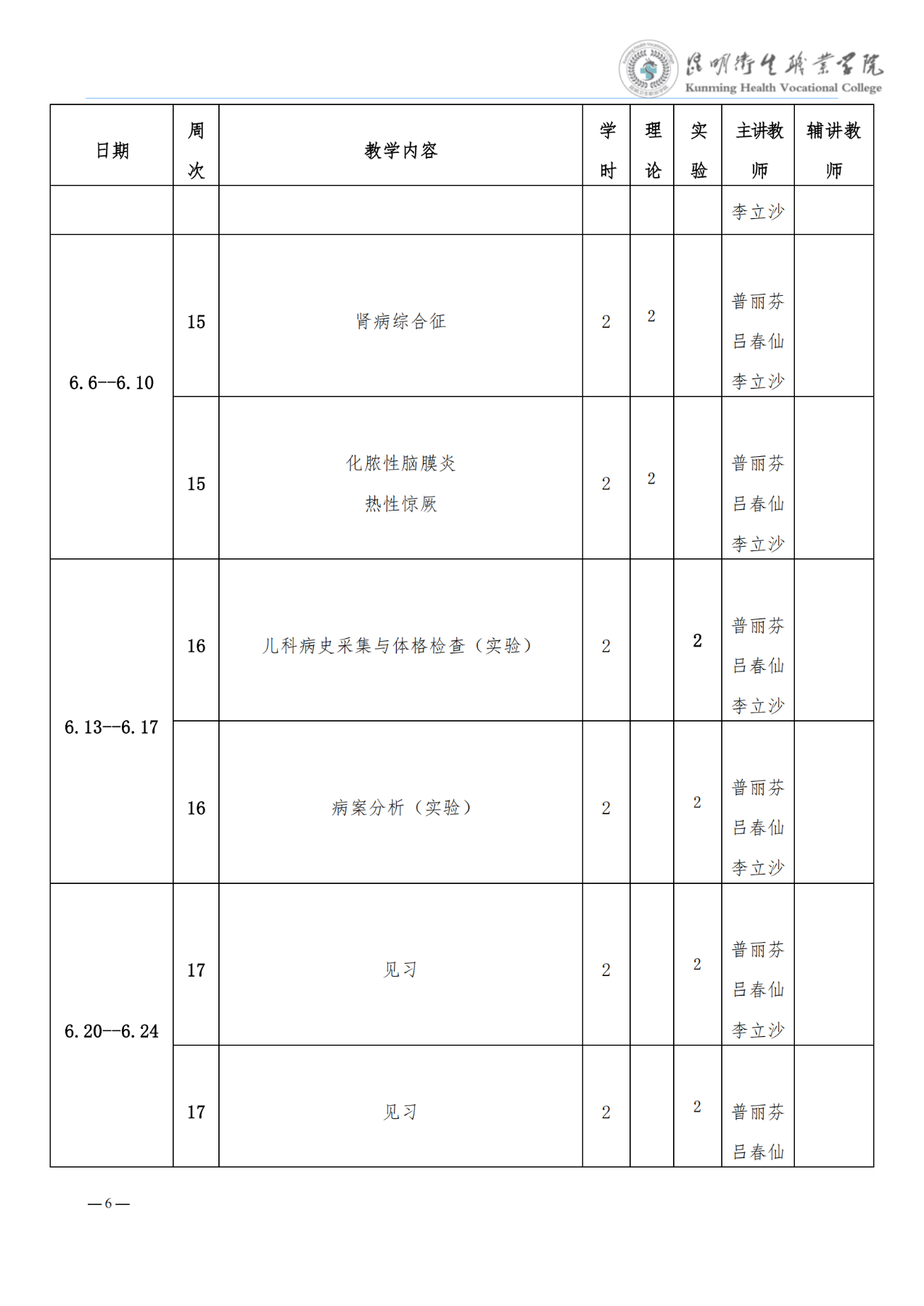《儿科学》教学进度表