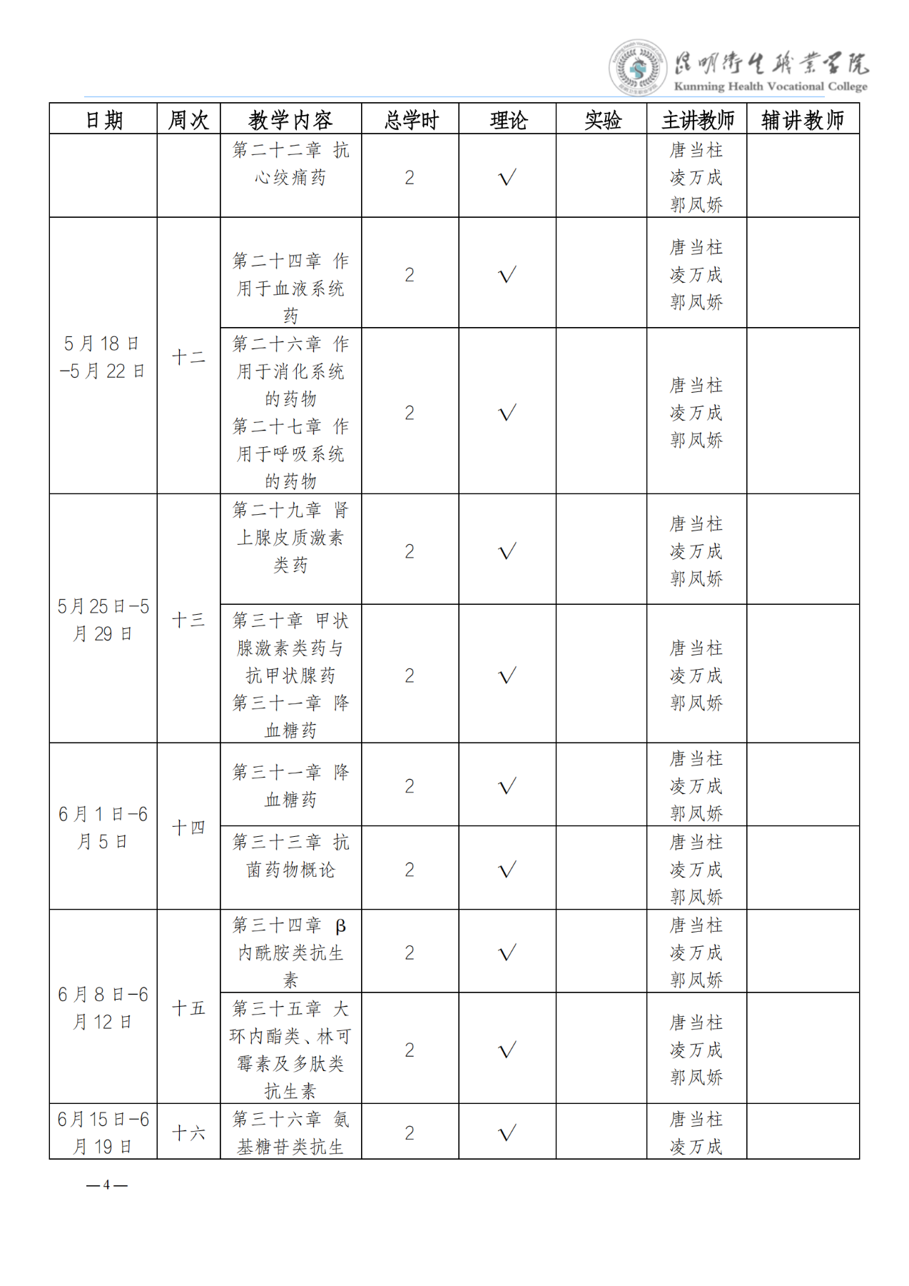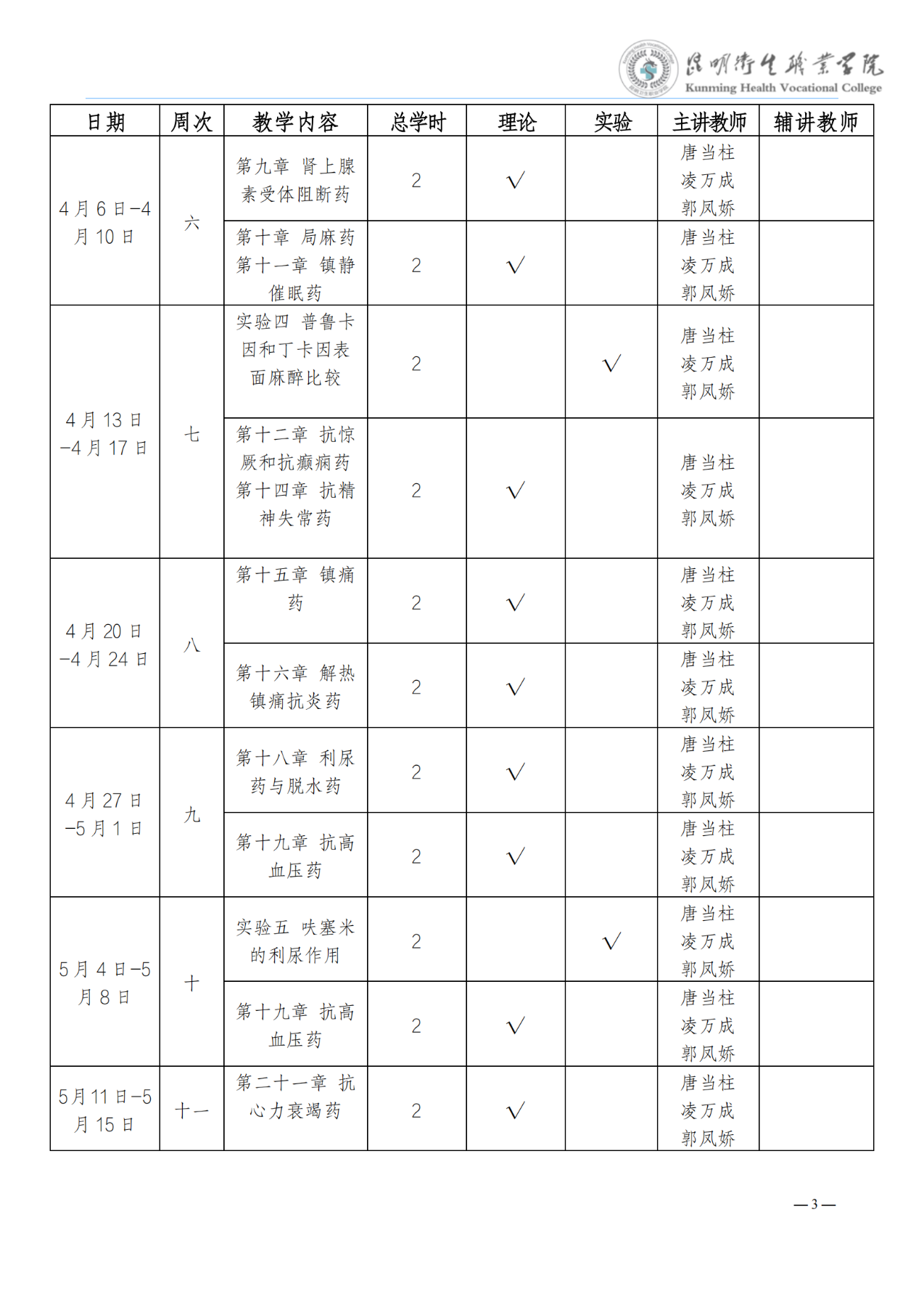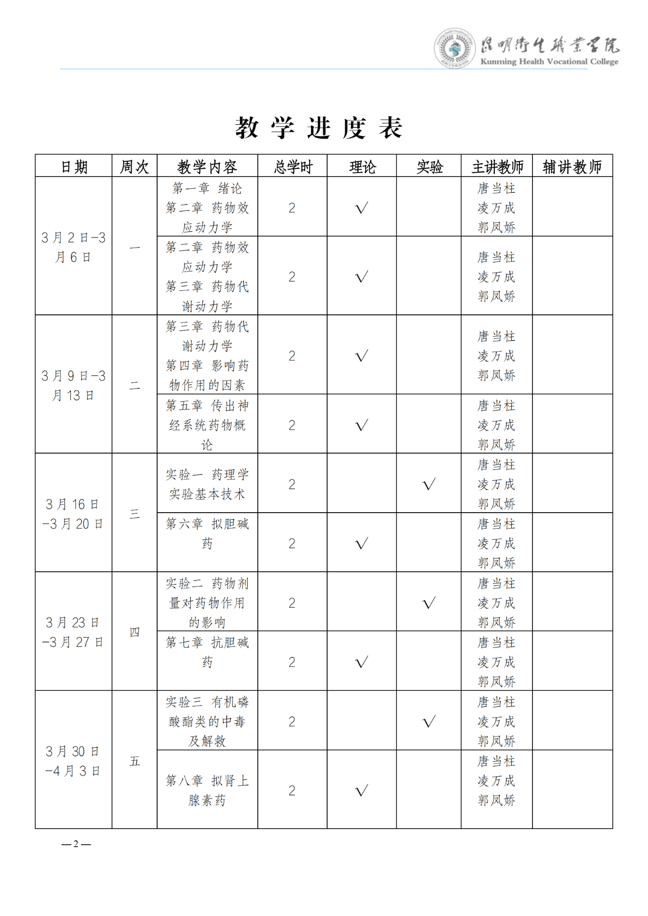 《药理学》教学进度表