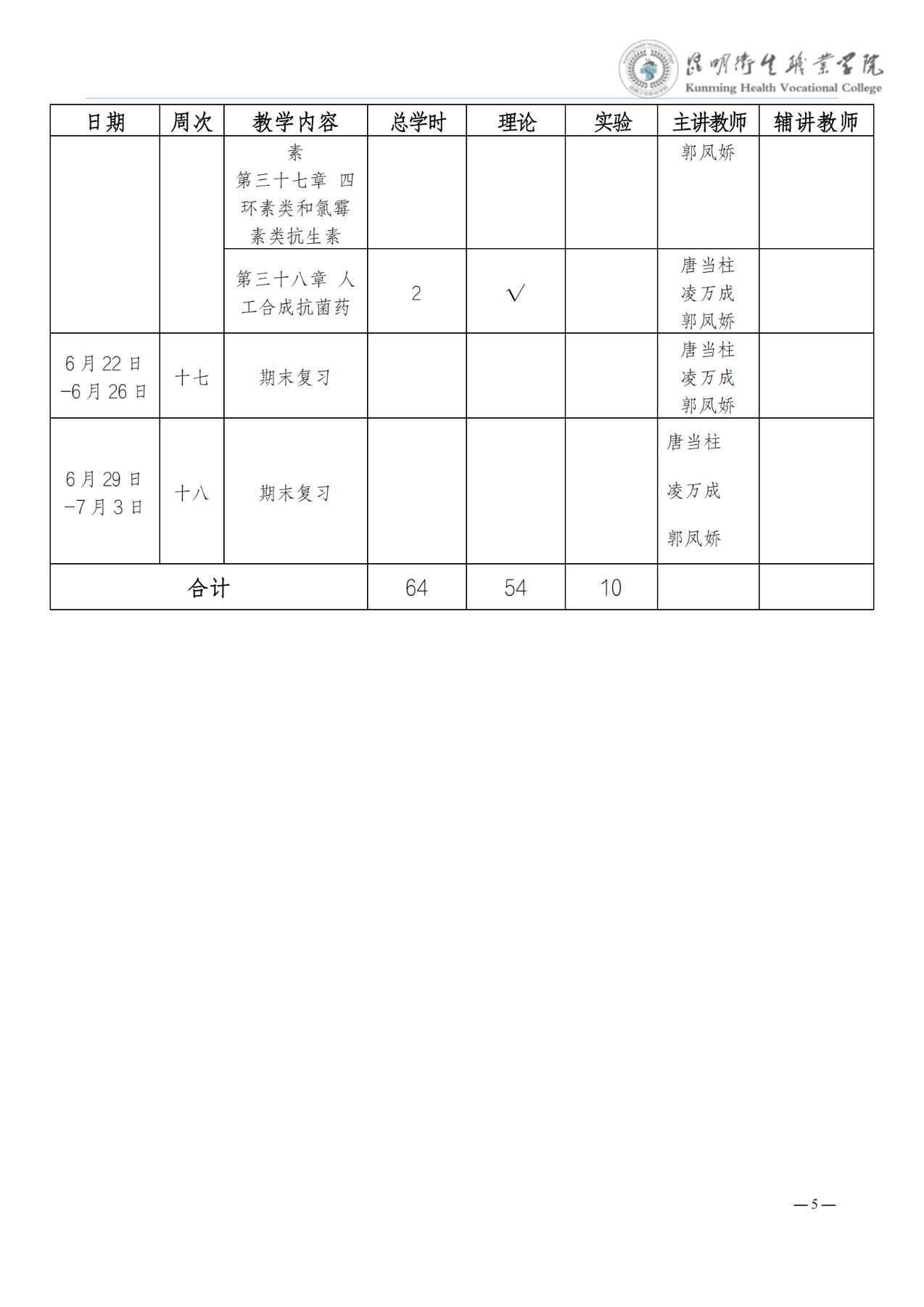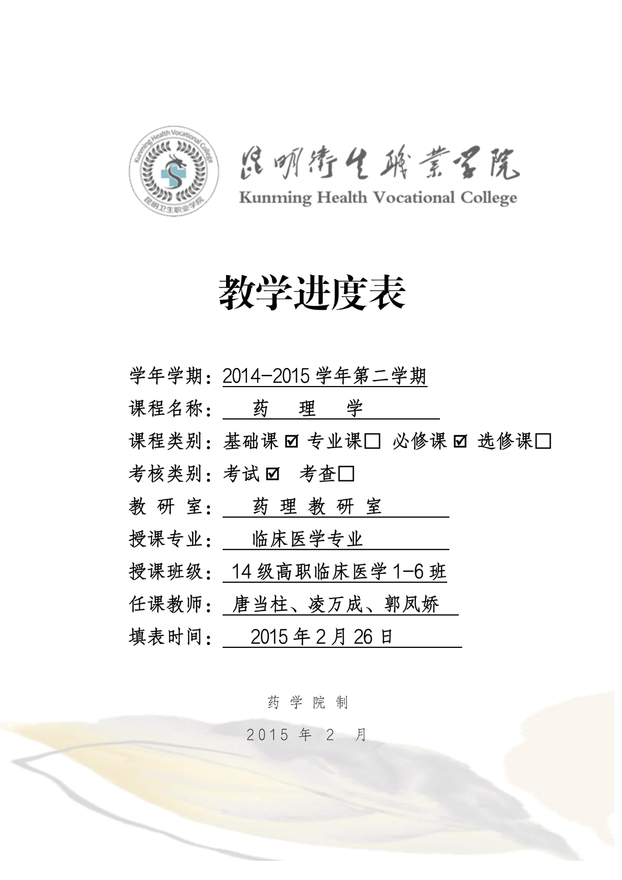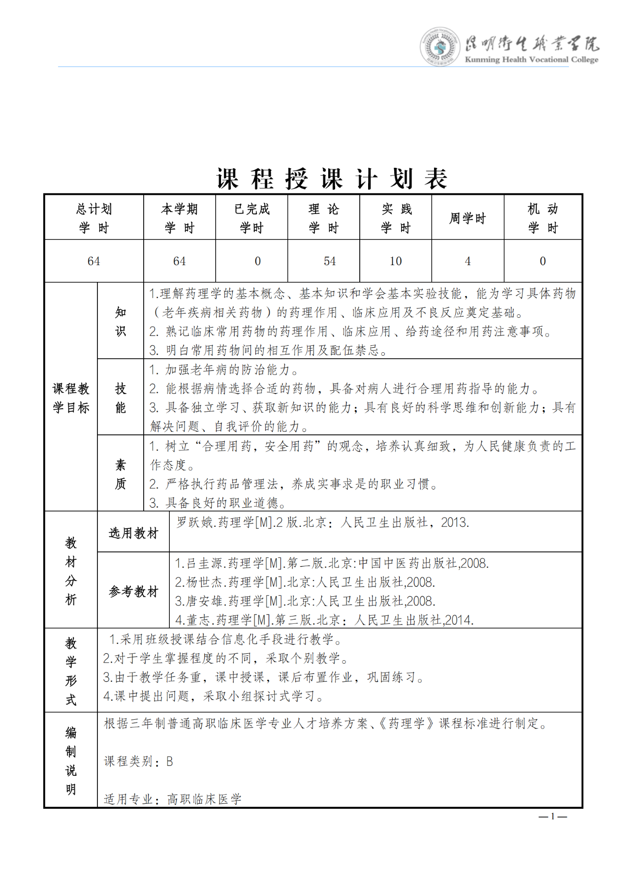 《药理学》教学进度表