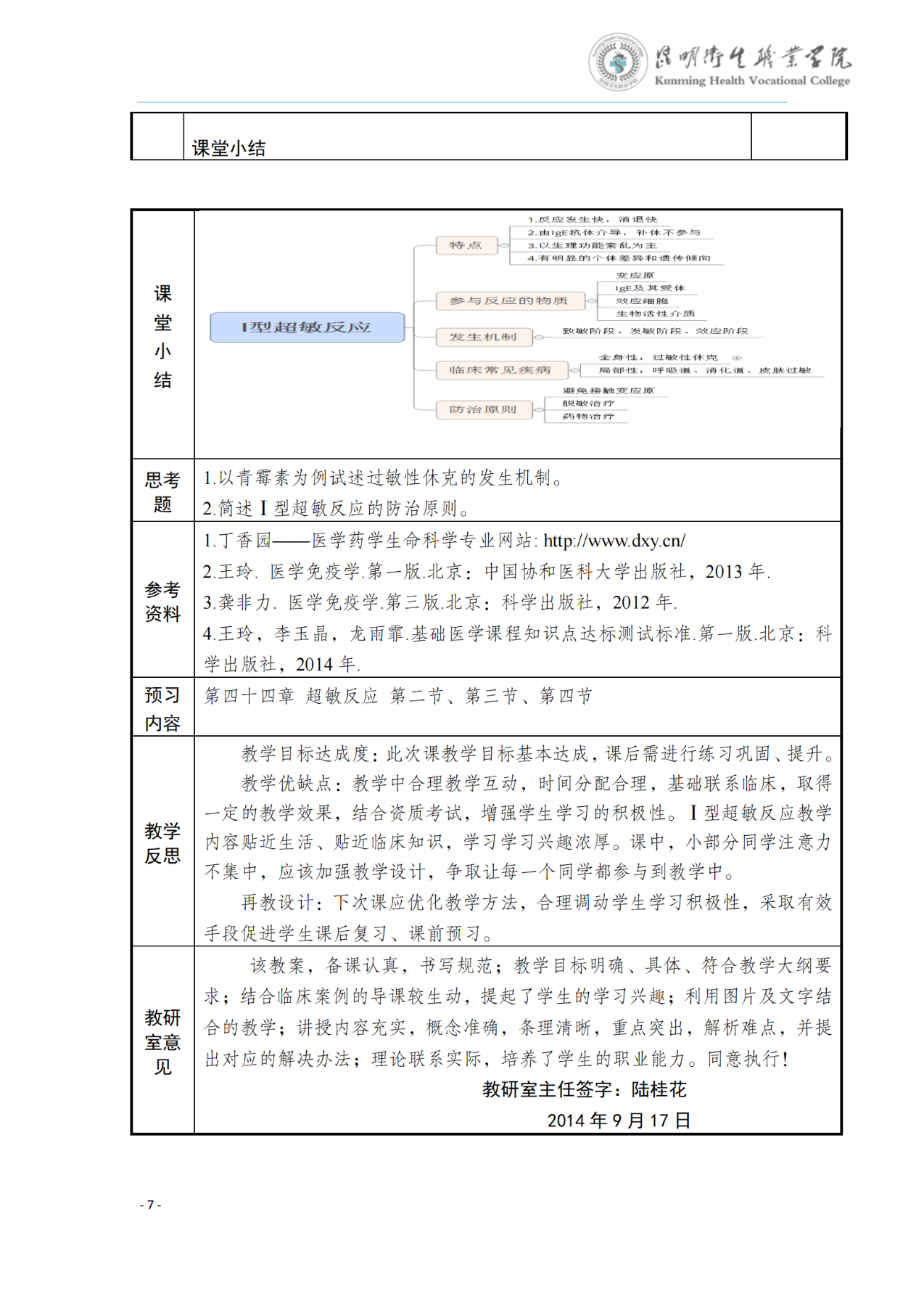 《Ⅰ型超敏反应》教案(病原生物学与免疫学)