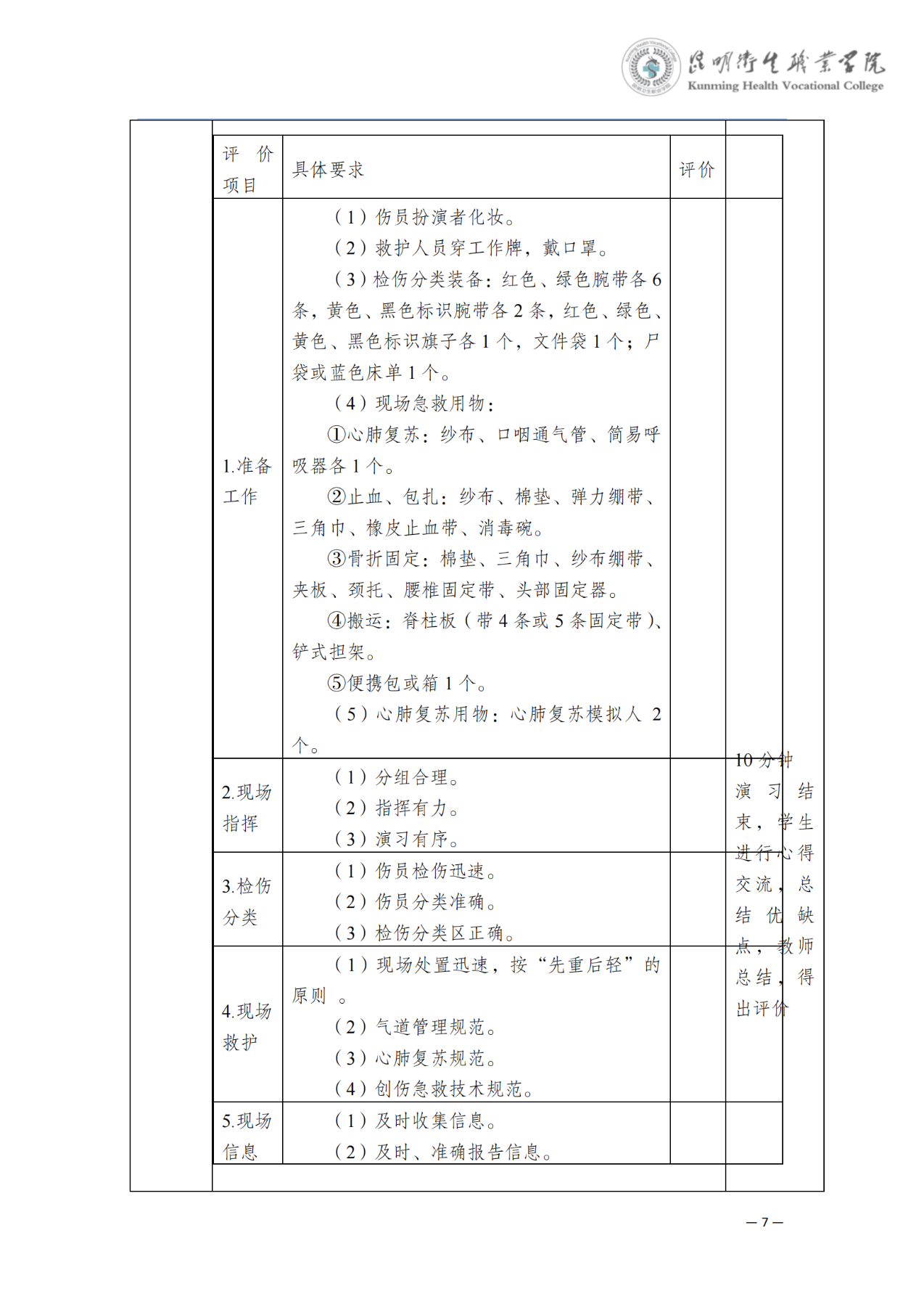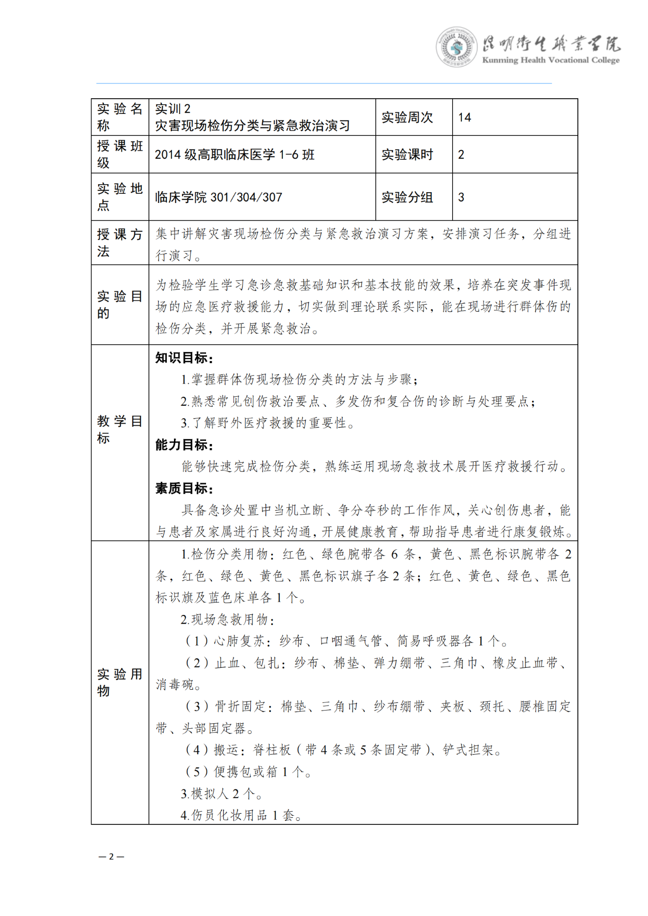 《灾害现场检伤分类与紧急救治演习》教案(急诊学)