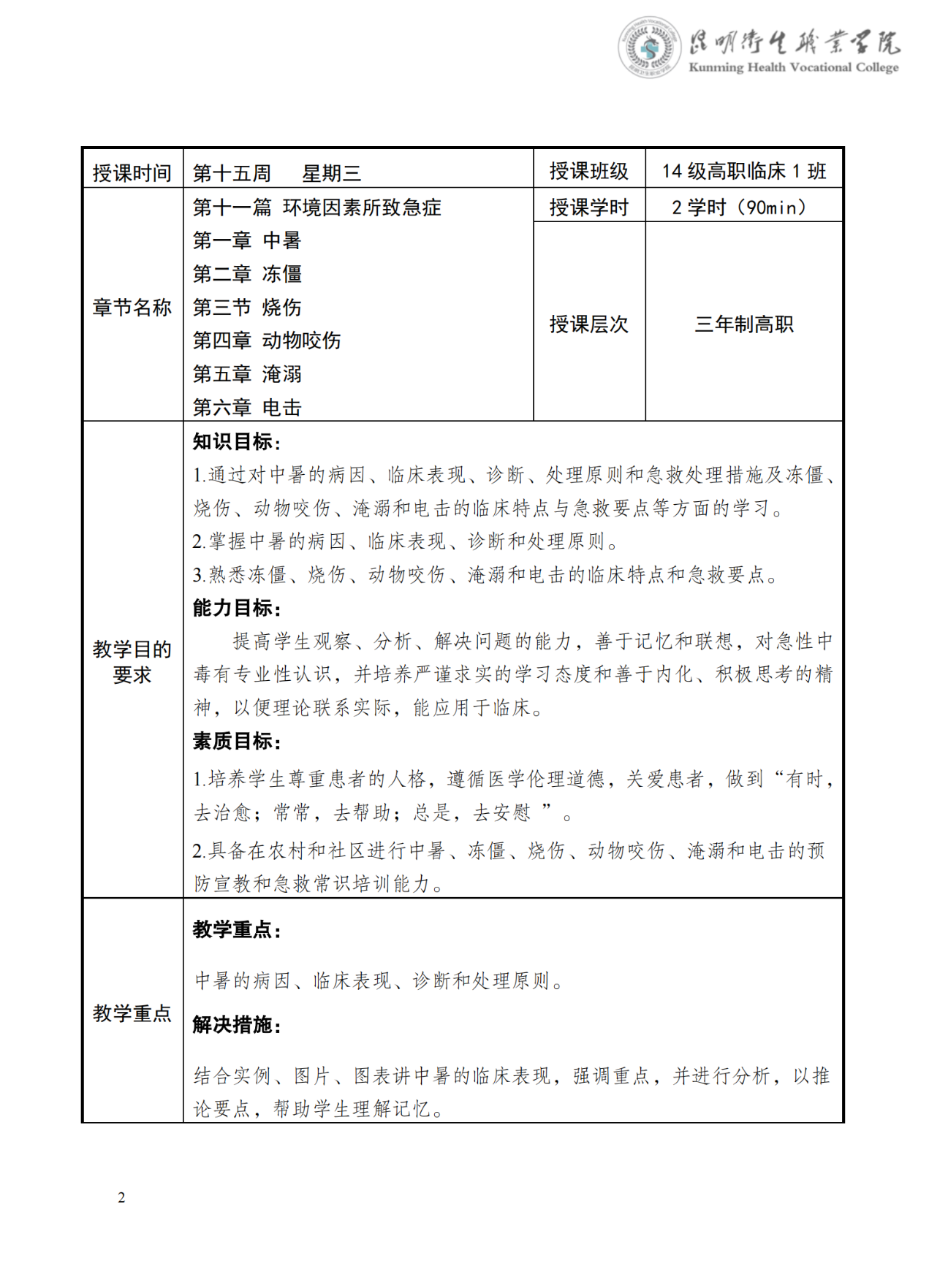 《环境因素所致急症》教案(急诊学)