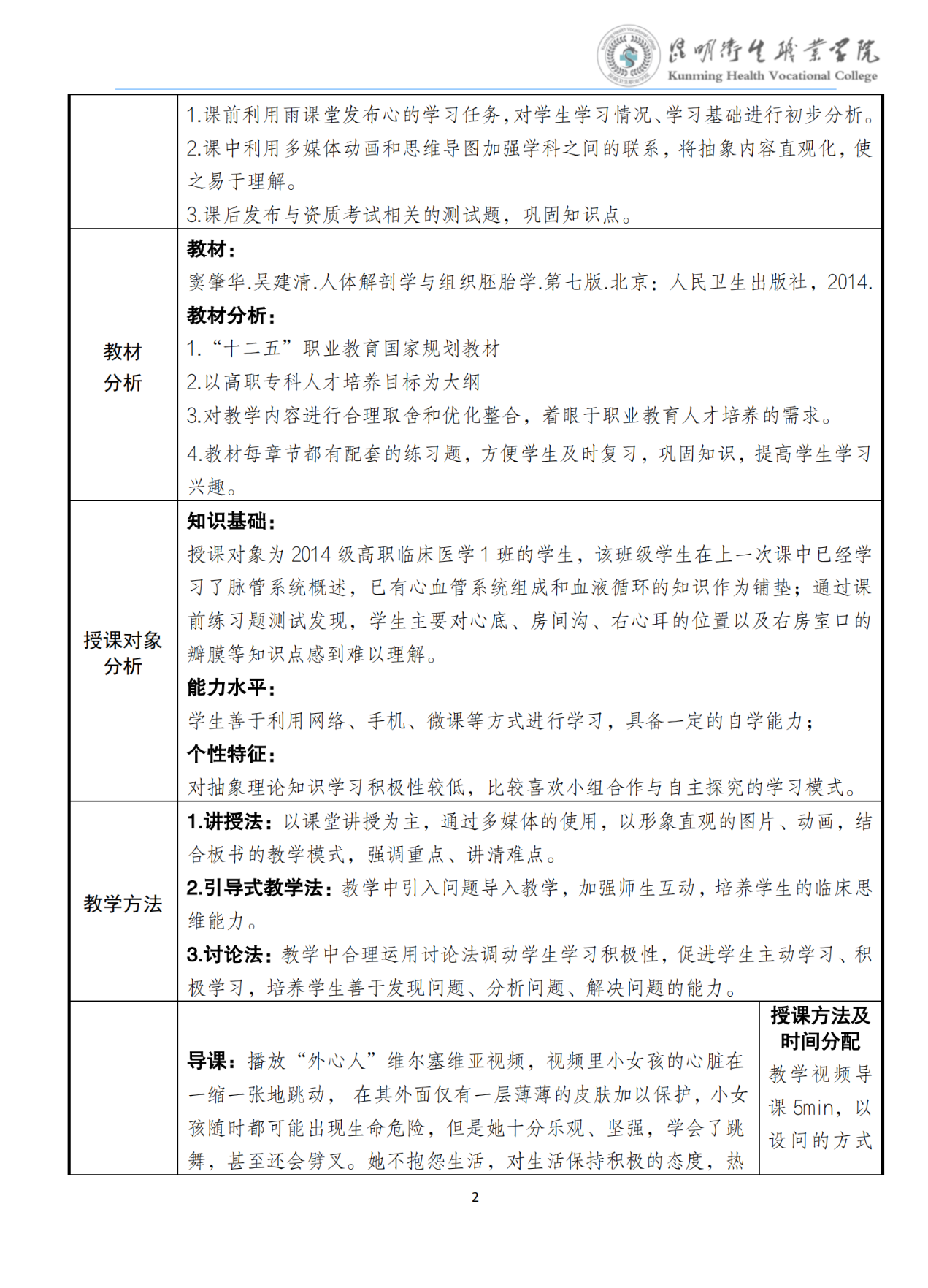 《心》教案(人体解剖学与组织胚胎学)