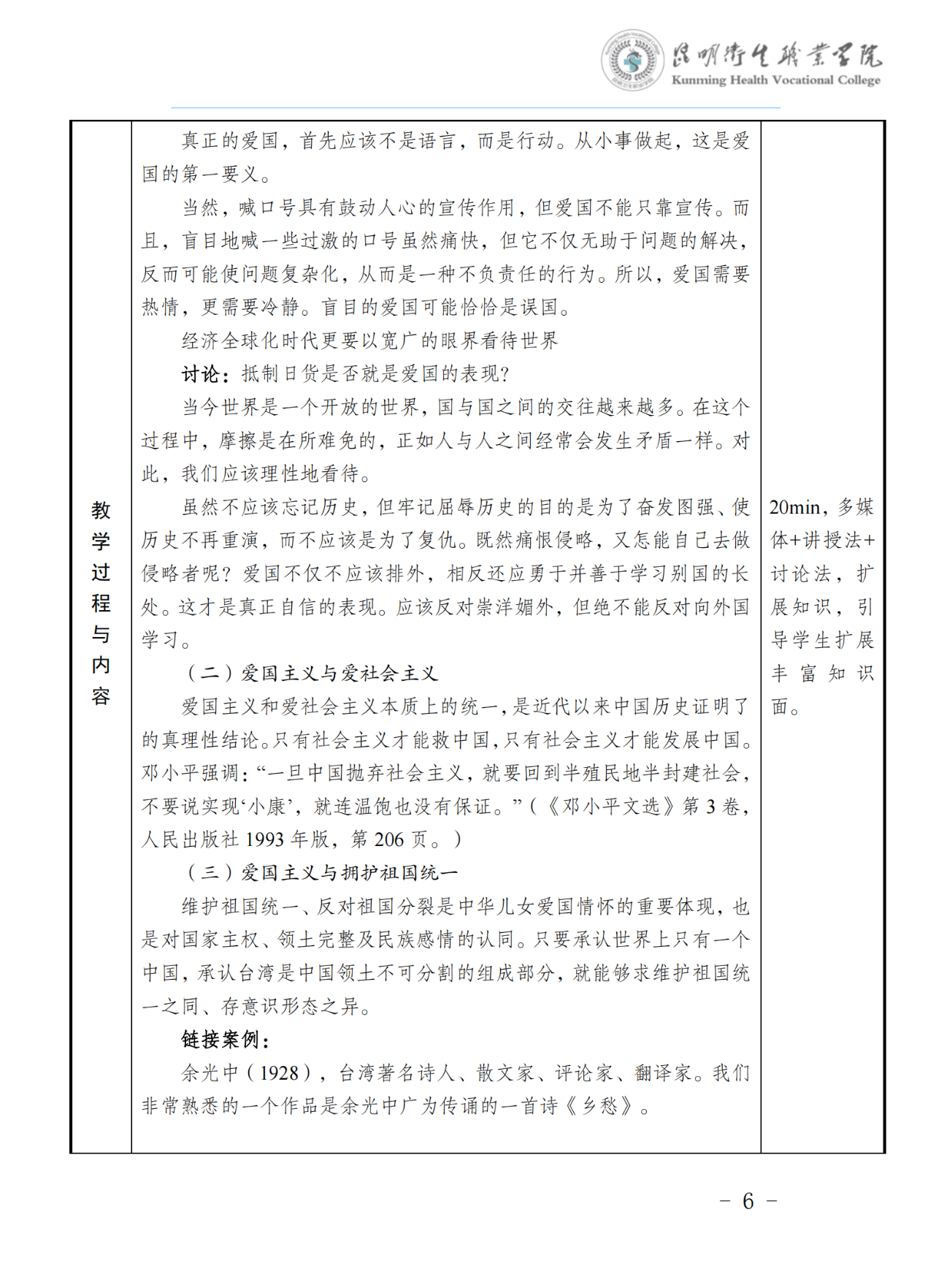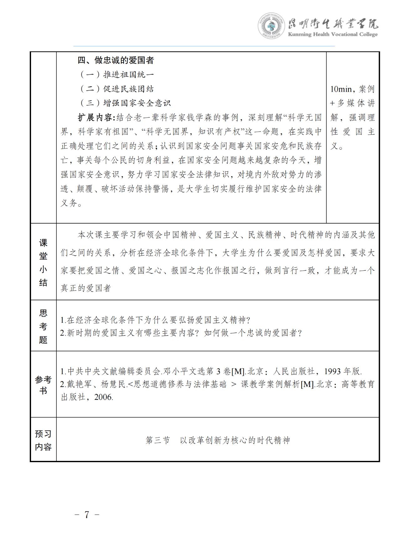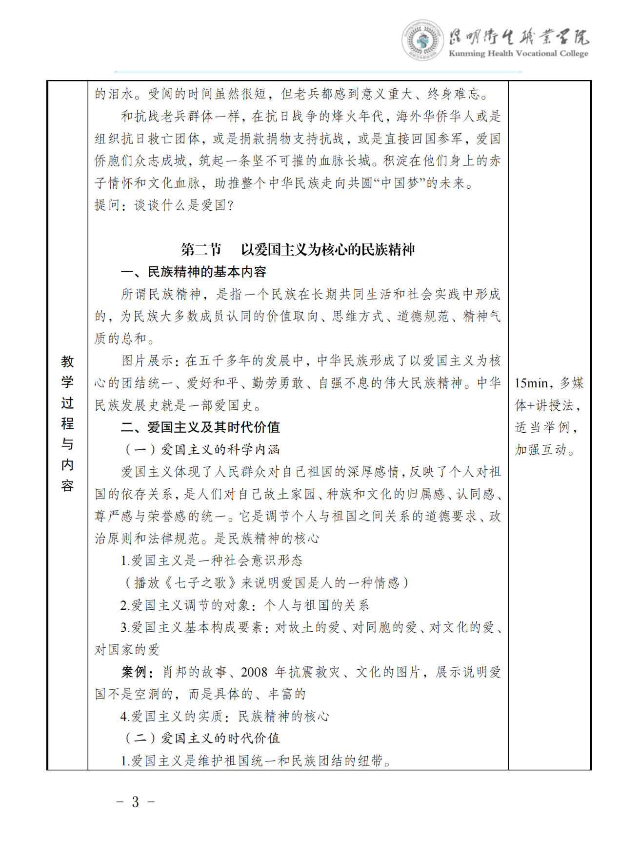 《以爱国主义为核心的民族精神》教案(思想道德修养与法律基础)