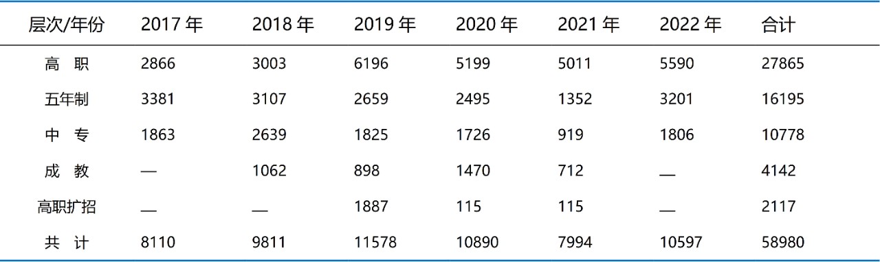 2017年-2022年各层次招生情况汇总表
