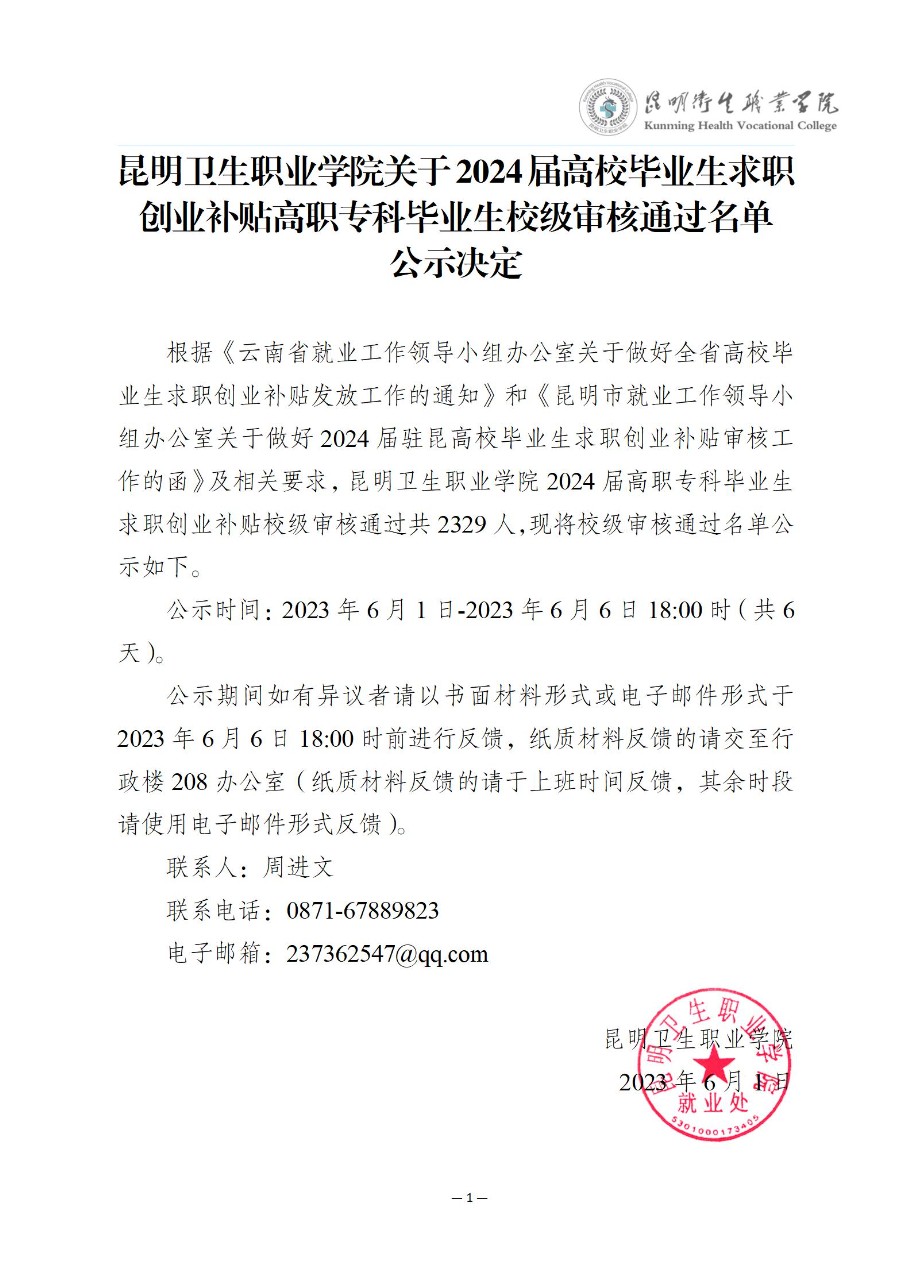 今年会官方网站关于2024届高校毕业生求职创业补贴高职专科毕业生校级审核通过名单公示决定