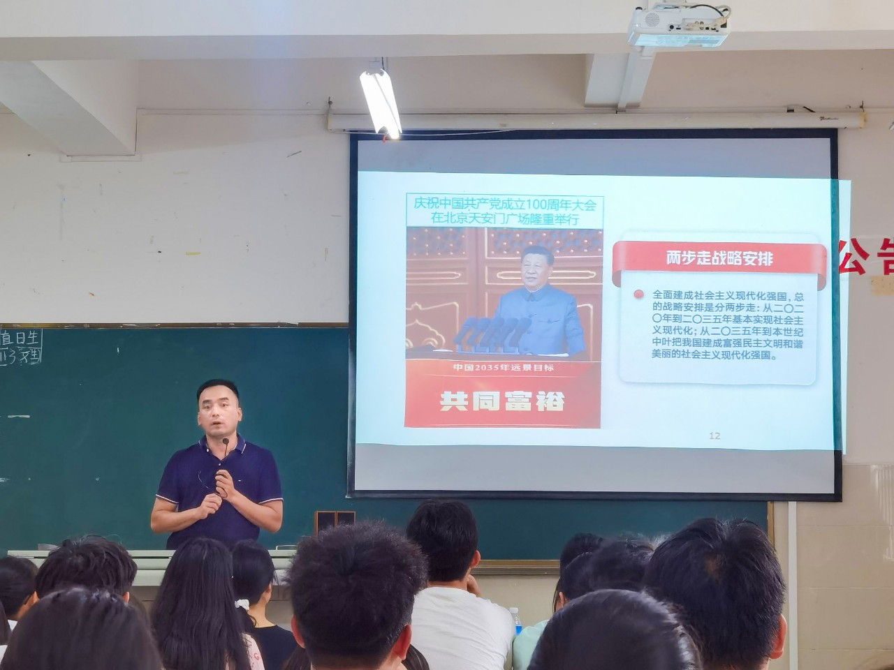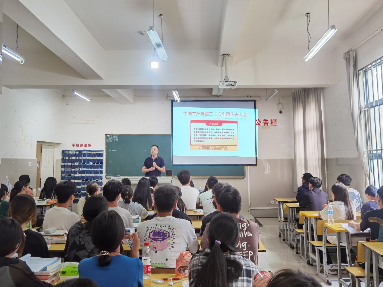 在主题教育“习近平新时代社会主义思想百县千乡万村行”如火如荼开展之时,为深入开展学习贯彻习近平新时代中国特色社会主义思想主题教育和党的二十大精神,全面学习贯彻习近平总书记在中央政治局第五次集体学习时的重要讲话精神和致云南大学建校100周年重要贺信精神,扎实推进习近平新时代中国特色社会主义思想进教材、进课堂、进头脑。2023年6月26日学院党委书记马季昕走进“形势与政策”思政课堂,以“中国式现代化之路”为题,为同学们讲授了一堂紧扣主题、生动鲜活的思政课。