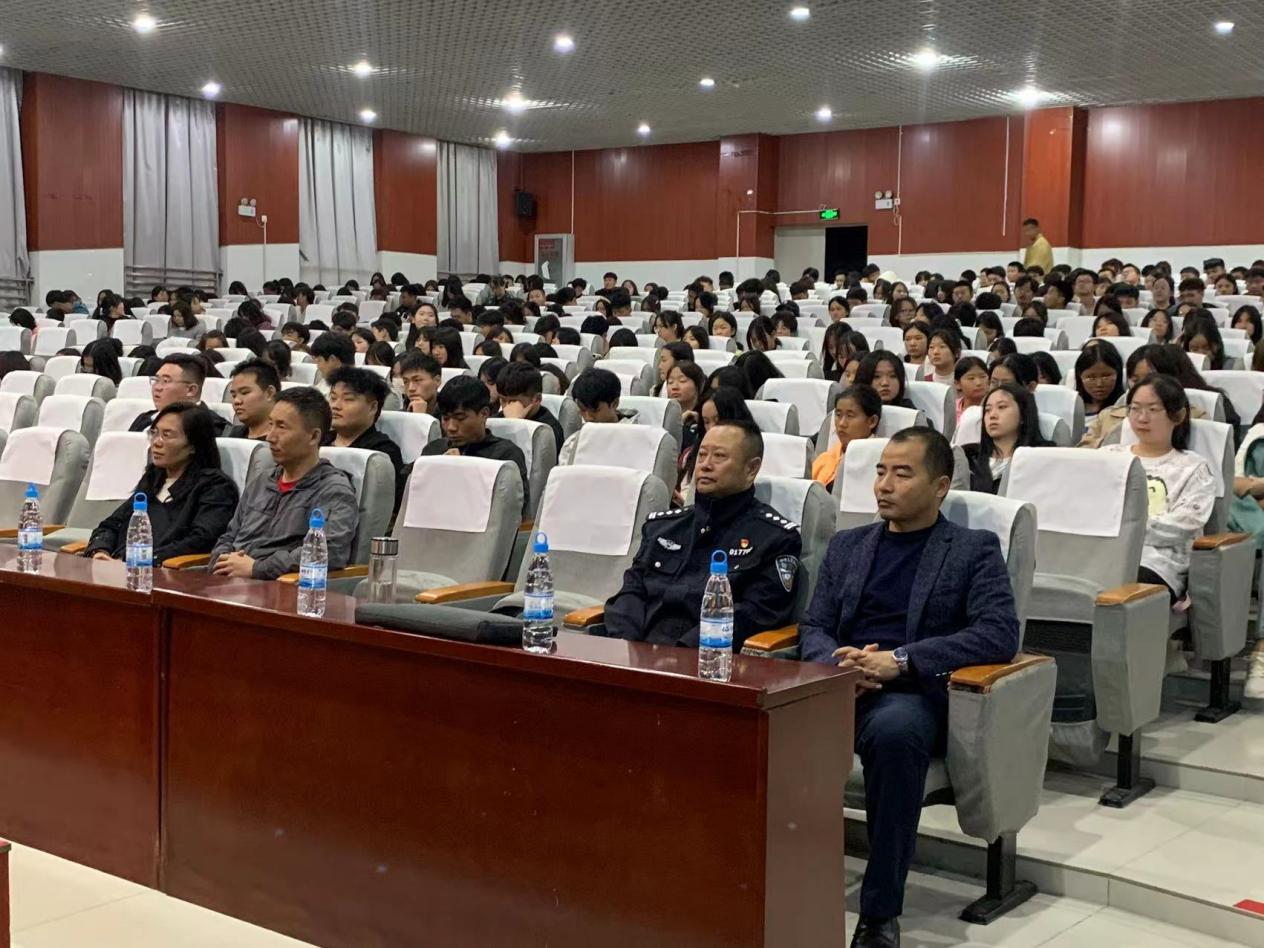出席本次讲座的嘉宾有:昆明市晋宁区政法委副书记李浩、昆明市公安局晋宁分局昆阳派出所马云坤、晋宁一中高级教师潘宇、大学生工作部负责人郭佶颖、王冬,还有各二级学院全体辅导员和500名学生。