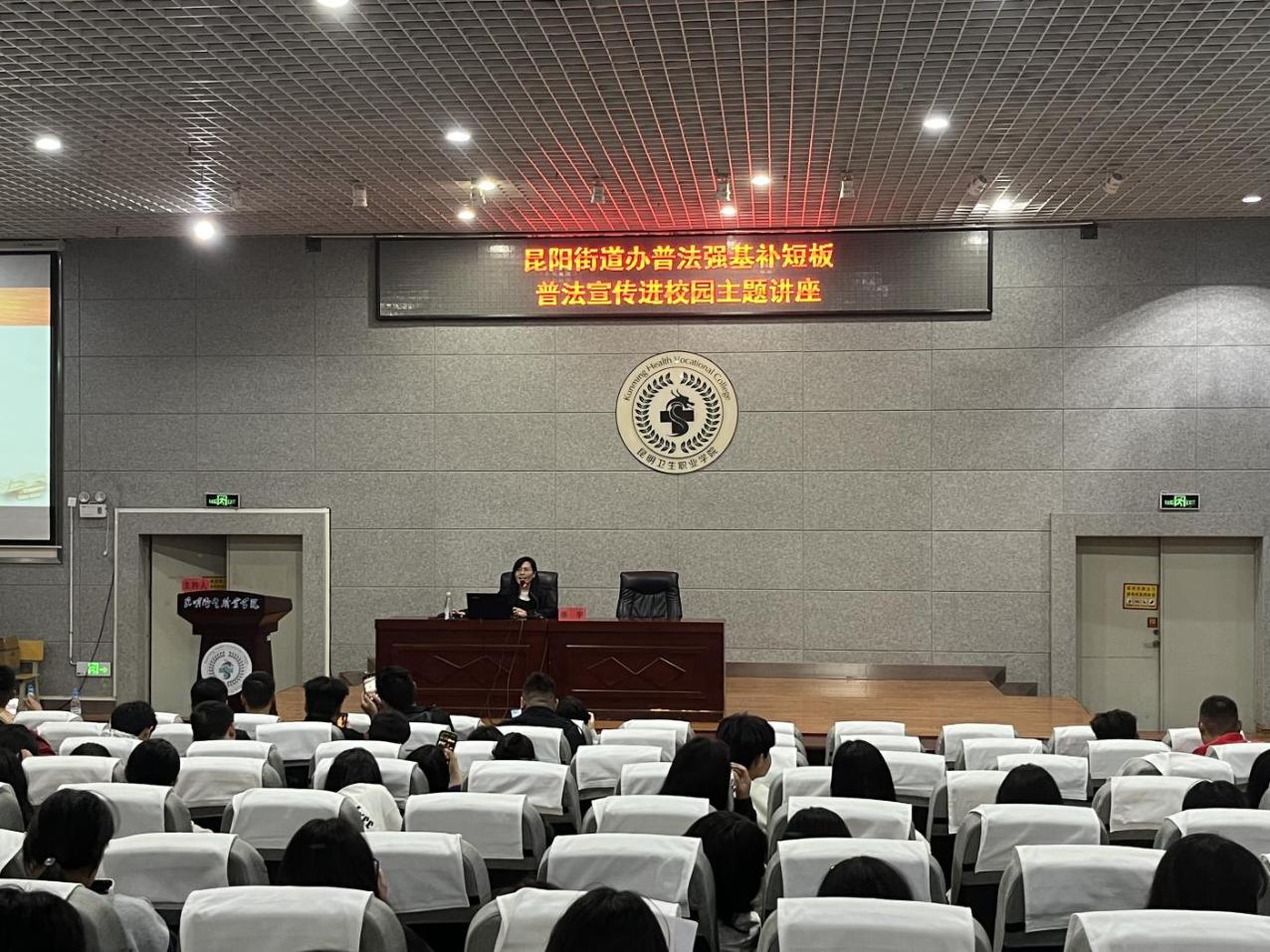 为进一步增强学生的法治观念,树立法律意识,提高学生知法、懂法、用法的自觉性,做一名维护法律尊严的合格大学生。2023年10月26日大学生工作部联合昆阳派出所在学术报告厅开展“普法强基补短板,普法宣传进校园”讲座。