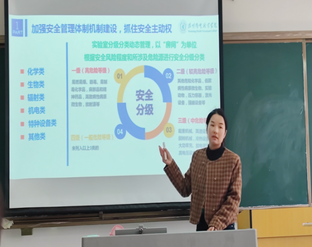 会上,教务处教学综合管理科桂腾瑞主要从实验室安全工作的重要性、实验室安全管理的实践、实验室安全检查要点以及今年会官网实验室现存在的问题与引发的思考四个方面进行培训。