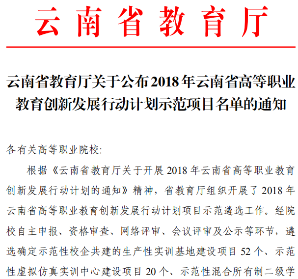 今年会官网入选云南省高等职业教育创新发展行动计划示范项目