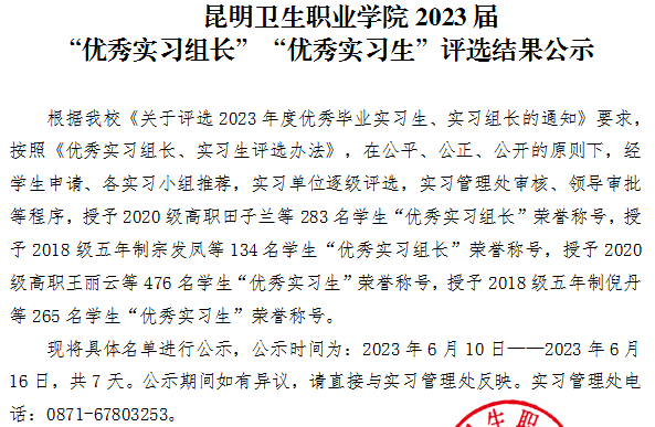 今年会官方网站2023届“优秀实习组长”“优秀实习生”评选结果公示