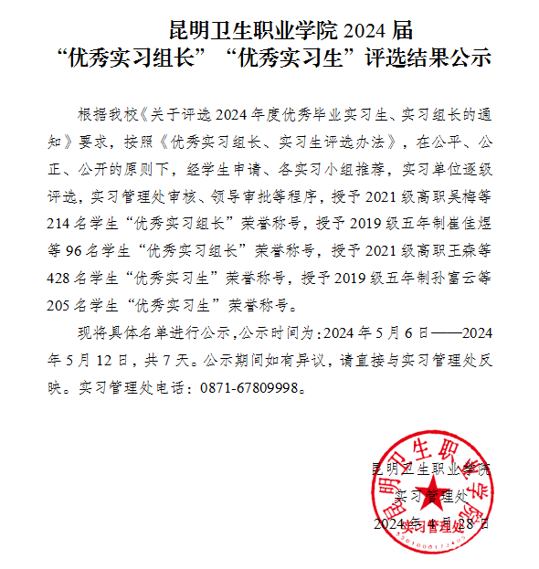 今年会官方网站2024届“优秀实习组长”“优秀实习生”评选结果公示