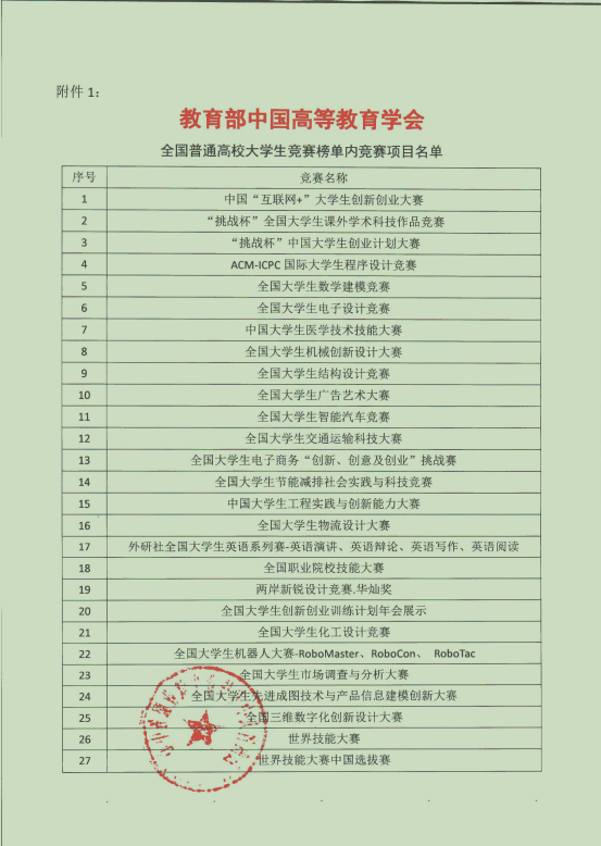 关于全国普通高校大学生竞赛榜单内竞赛项目名单的展示