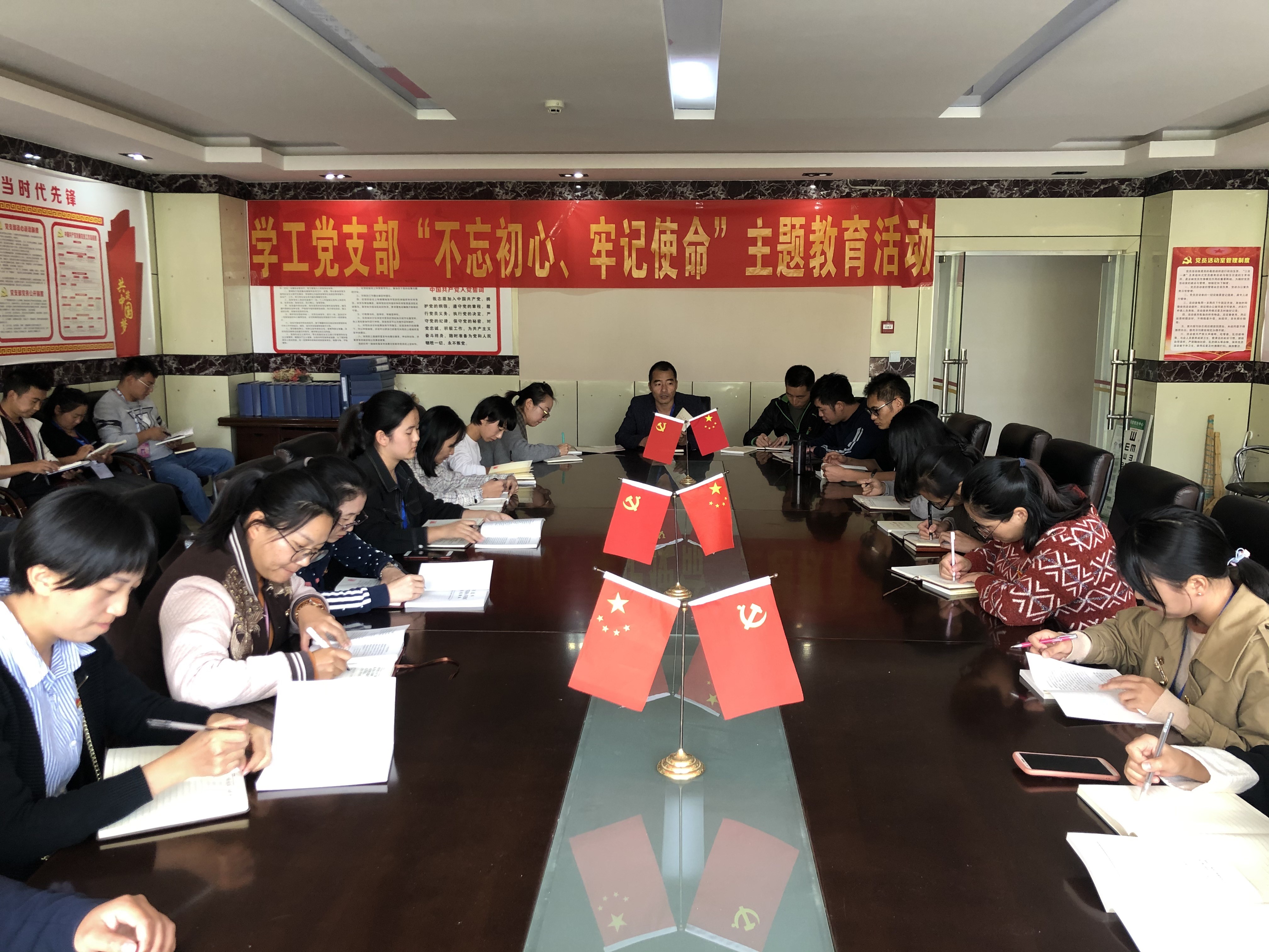 根据学院党委10月11日下发的《中共今年会官方网站委员会主题教育领导小组办公室关于各党支部开展“不忘初心、牢记使命”主题教育工作的通知》,我支部按照通知要求,积极开展各项学习活动,从党员自学到党支部集体学习,全员上下全体党员扎实理论学习,结合自身学习工作经历,从党的建设、育人工作等各方面学习与自省。