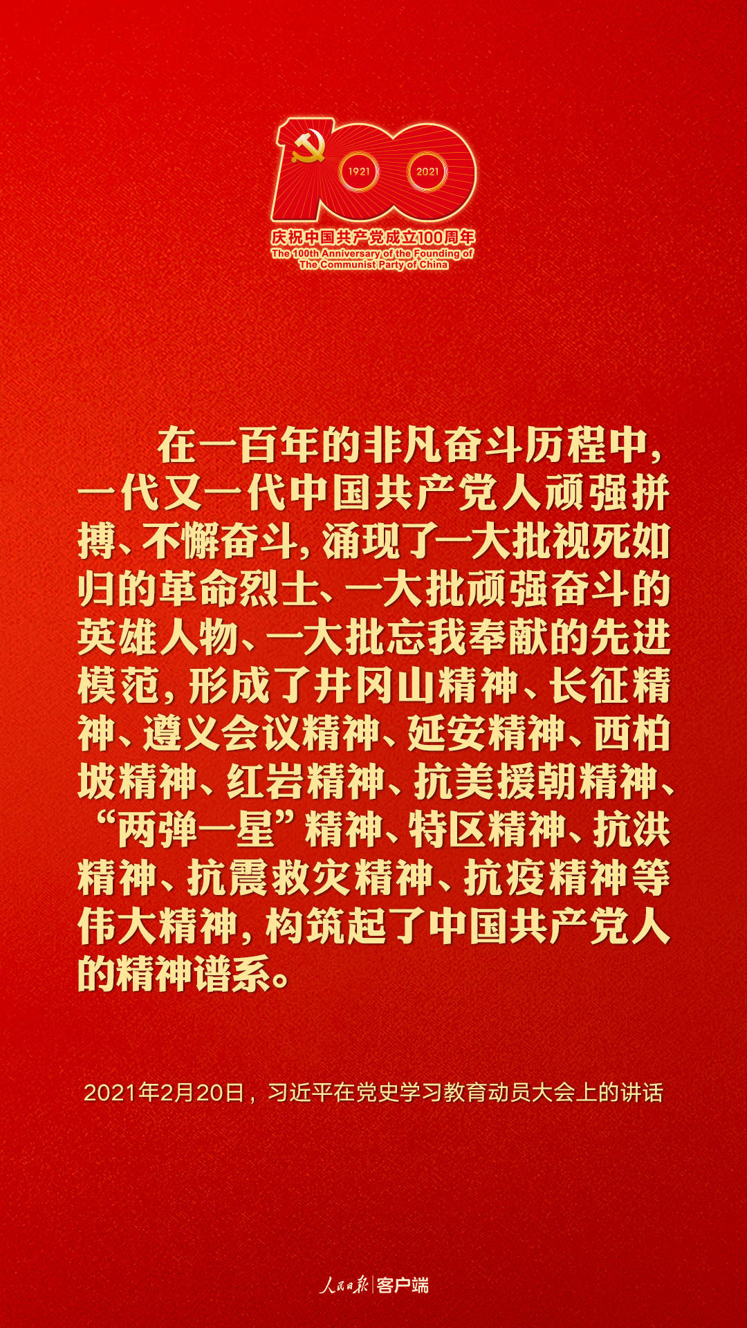 【党史学习教育专栏】 建党百年,听习近平讲述中国共产党人的精神谱系