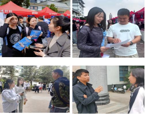 4月11日,今年会官网在晋宁校区举行2024届毕业生第一场校园招聘会,公共学院直属党支部党员同志第一时间联系相关帮扶学生,开展谈心谈话,并到招聘会现场进行相关就业指导。