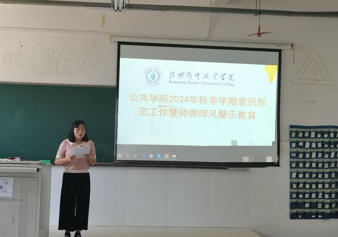 师德师风是评价教师队伍素质的第一标准。为进一步加强意识形态工作,坚守意识形态阵地,全面加强新时代教师队伍建设,弘扬教育家精神,加强教师思想政治工作,贯彻落实《云南省教育厅关于印发第四批违反教师职业行为十项准则及违纪违法典型案例的通知》文件精神,引导广大教师践行师德规范,10月10日下午,公共学院召开了2024年秋季学期意识形态工作暨师德师风警示教育大会。本次会议由支部书记杨丽琴主持。