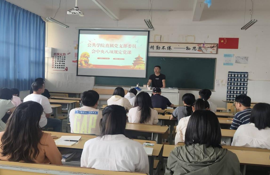 为深入贯彻全面从严治党战略方针,持续加强党员干部作风建设,切实将中央八项规定精神内化于心、外化于行,2025年7月18日,公共学院直属党支部精心组织开展中央八项规定精神专题党课学习活动。支部全体党员参会,通过系统学习、案例剖析,进一步拧紧纪律规矩“发条”,为学院高质量发展凝聚廉洁奋进力量。