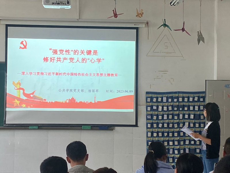 为深入开展学习贯彻习近平新时代中国特色社会主义思想主题教育,提高支部全体党员同志的政治站位,用党的创新理论统一思想、凝聚思想共识、提升党性修养。2023年6月9日下午,公共学院党支部书记杨丽琴以《“强党性”的关键是修好共产党人的“心学”》为题,给支部全体党员同志讲党课。在...