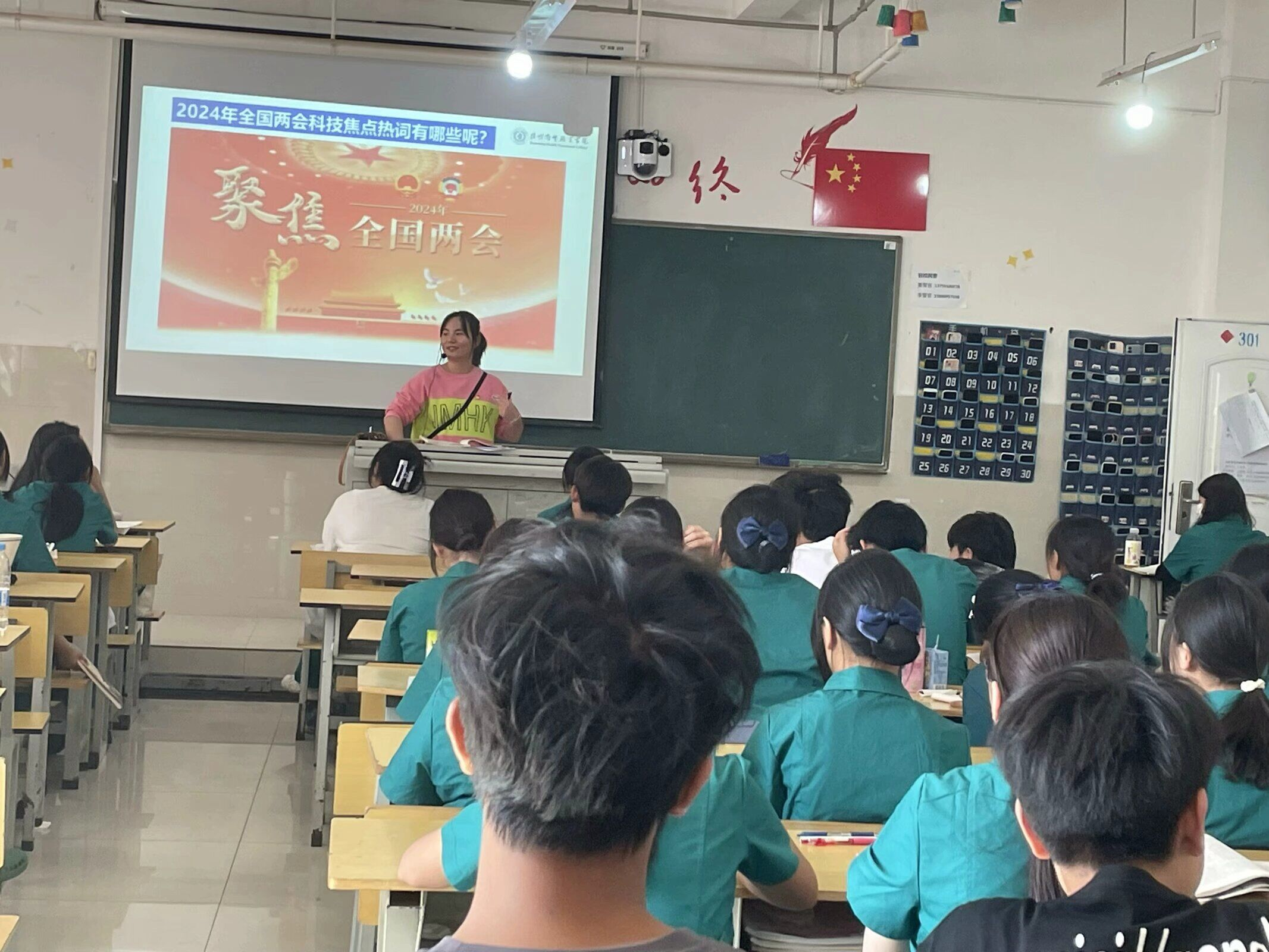“全国两会”的胜利召开,将为新征程写下浓墨重彩的华章。时间属于奋进者,历史属于推进者。“青年兴则国家兴,青年强则国家强。青年一代有理想、有本领、有担当,国家就有前途,民族就有希望。”蒋书记用生动的语言、广阔的视野和深厚的情怀把“全国两会”精神融入了思政课堂。这是一堂生动且有亲和力的思政课,同学们表示深受启发,倍感鼓舞。本次思政课不仅增强了同学们的政治意识、大局意识,也激发了大家为实现美好未来而奋斗的热情和信心。最后,蒋书记希望同学们能够珍惜时光、勤奋学习、全面发展,努力成为新时代的栋梁之材。