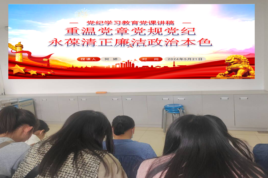 党课过程中,何娇同志首先向同志们讲述了开展党纪学习教育的意义,后又从“党章是全党必须遵循的总规矩”“中国共产党纪律处分条例”“中国共产党廉洁自律准则”“关于新形势下党内政治生活的若干准则”“中国共产党党内监督条例”五个方面来开展本次党纪学习教育。