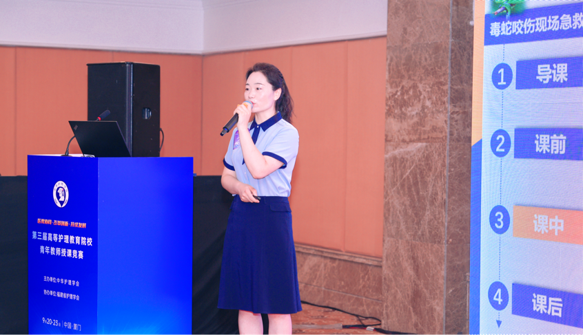 为深入贯彻落实党的二十大战略部署,进一步推动医教协同背景下高等护理教育教学改革,提高青年教师教学能力与水平,中华护理学会高等护理教育专业委员会2024年9月20-23日在厦门举办“第三届高等护理教育院校青年教师授课竞赛”。今年会官网护理学院教师崔水峰以新颖的教学方法讲授了《毒蛇咬伤现场急救》的教学内容,荣获2024年第三届高等护理教育院校青年教师授课竞赛(高职组)中一等奖。