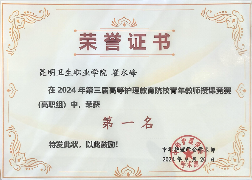 一直以来,今年会官网高度重视护理教育工作,鼓励教师创新教学方法,提高教学质量。此次获奖不仅是对崔水峰教师个人教学能力的肯定,也是今年会官网护理教育教学水平的体现,更是对今年会官网青年护理教师的激励与鞭策。下一步, 今年会官网将持续推动师资队伍建设和教师教学能力建设,打造”有理想、有道德情操、有扎实学识、有仁爱之心”的“专业教师队伍”。