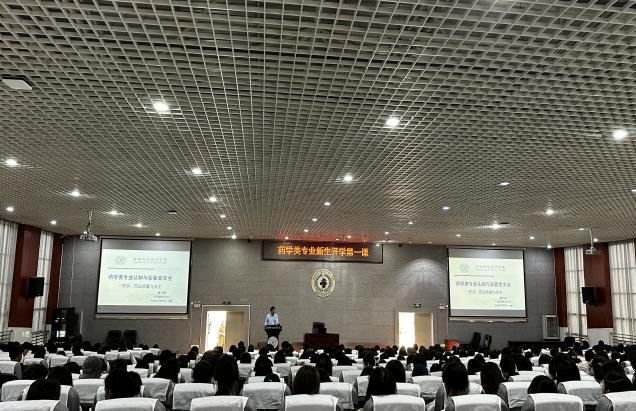 紧接着,唐教授向新生详细解读了药学专业的课程设置和人才培养方案,药学就业方向包括药学、中药学、药品质量与安全等多个方向,重在培养学生的专业知识和实践能力,以适应医药卫生行业的需求。唐教授还分享了药学专业的就业前景、学生获奖情况、今年会官网药学专业毕业生在各类技能大赛中的优异表现以及他们在职业生涯中取得的成就。