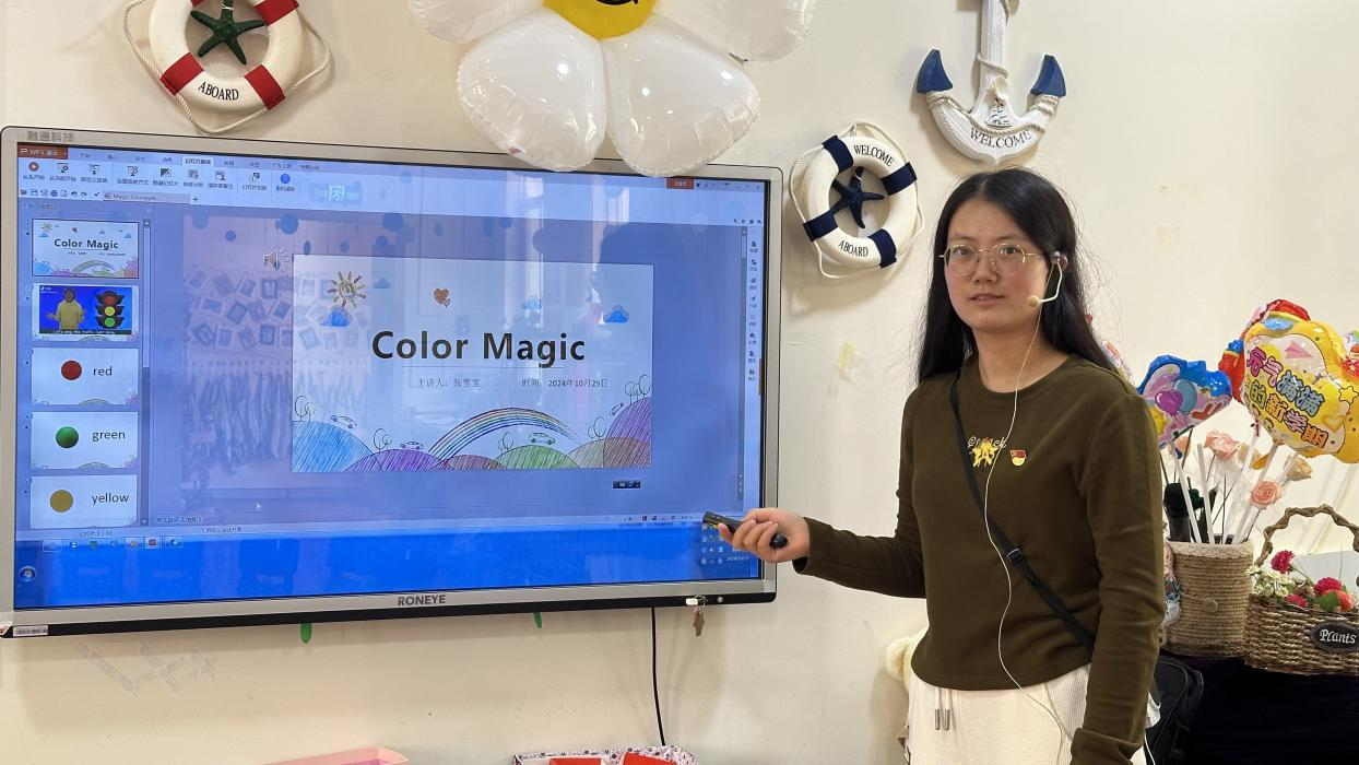 活动现场,英语启蒙教育课程宛如一场精彩绝伦的奇幻之旅。张雪雪同志以亲切温暖的方式开场,迅速吸引了孩子们的目光,为后续的教学活动营造了积极活跃的氛围。在教学过程中,精心设计了多个环节,不仅注重知识的传授,更巧妙地将爱国主义教育元素融入其中。