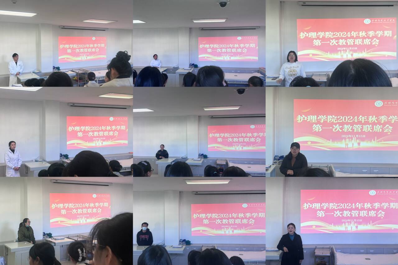 2024年11月15日,护理学院在101、102实训室顺利召开了2024年秋季学期第一次各专业教管联席会。本次会议旨在强化教学与学生管理之间的沟通与合作,共同探讨并解决在教学和学生管理过程中遇到的问题,以促进护理学院教育事业的进步。