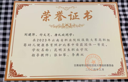 2023.09云南省职业院校技能大赛高职组婴幼儿健康养育照护团体赛一等奖